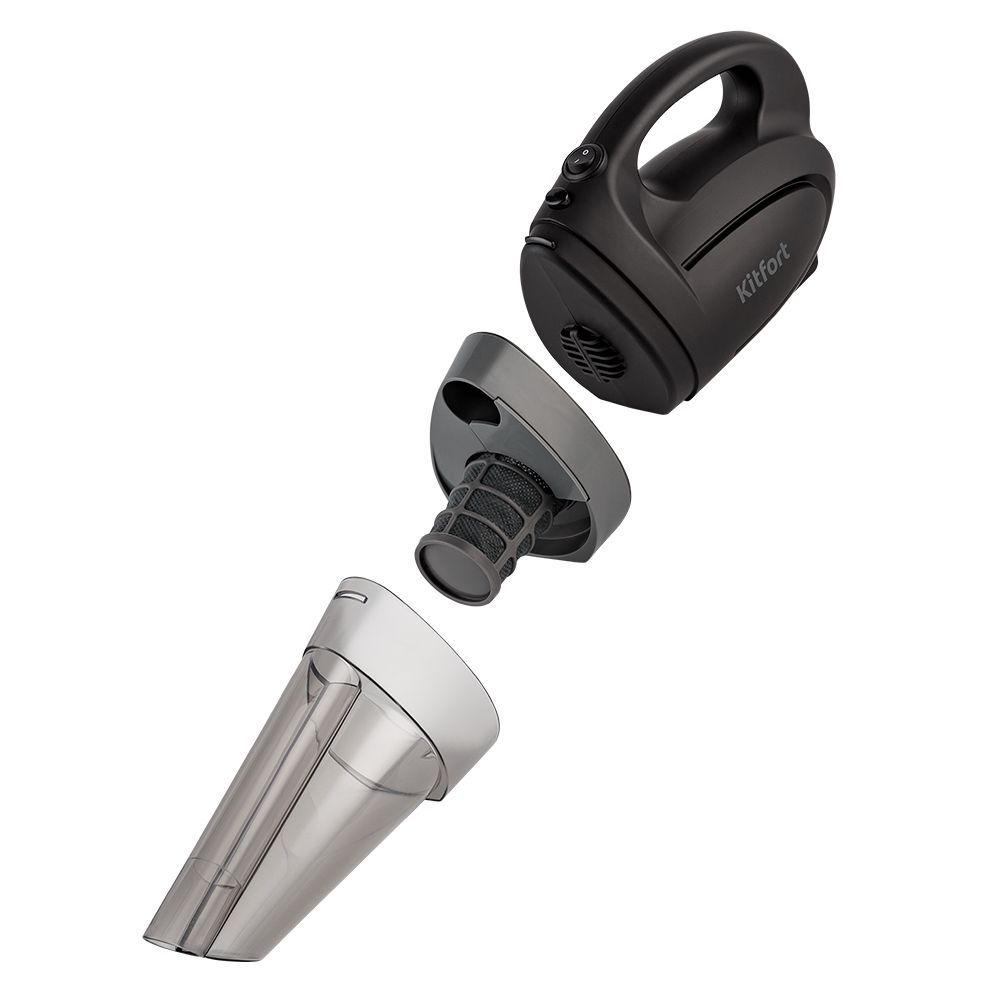 Ручной пылесос КТ-5139 — это компактное устройство, которое легко справится с пылью и мусором при уборке вашего автомобиля. Небольшие габариты и малый вес прибора делают процесс уборки простым и удобным! Кнопка включения располагается на рукоятке пылесоса, что позволяет удобно и быстро включить и выключить прибор в процессе уборки. Также на моторном блоке находится кнопка отсоединения пылесборника для оперативной очистки пылесоса. Узкая насадка пылесоса поможет вам в очистке узких мест (углов, щелей). Ворсовая щётка необходима для очистки поверхностей от шерсти, а использование этих насадок с удлинительной трубкой позволят провести уборку в труднодоступных местах! КТ-5139 станет вашим главным помощником в уборке салона автомобиля. Ручной пылесос поможет вам навести чистоту на всех поверхностях и в труднодоступных местах. Благодаря работе от прикуривателя вы можете очистить салон автомобиля в любом месте! Первый уровень фильтрации — циклонный фильтр, который отсеивает наиболее тяжёлые загрязнения. На втором уровне фильтр грубой очистки останавливает мелкие частицы мусора, которые не были захвачены циклонным фильтром. Идеально для качественной уборки! Контейнер пылесборника легко снимается и быстро моется. Благодаря съёмному прозрачному пылесборнику вы точно поймёте, когда следует очистить его. Для очистки пылесборника необходимо нажать на кнопку отсоединения пылесборника.