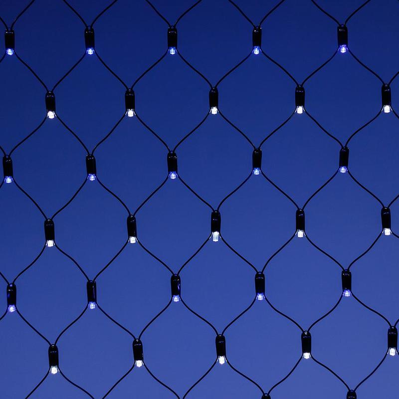 Светодиодная гирлянда СЕТЬ серии CLASSIC. Размер 2500x2500 (длина 2500 мм, высота 2500 мм). Цвет светодиодов БЕЛЫЙ (6000 К) / СИНИЙ (светодиоды чередуются), постоянное свечение и 8 динамических эффектов. Провод из прозрачного ПВХ, диаметр 2.3 мм. 432 светодиода размером 7 мм, прозрачный вогнутый колпачок. Напряжение питания 230 В, потребляемая мощность 26 Вт, степень пылевлагозащиты IP65. Аксессуар для подключения и выбора режима свечения в комплекте.