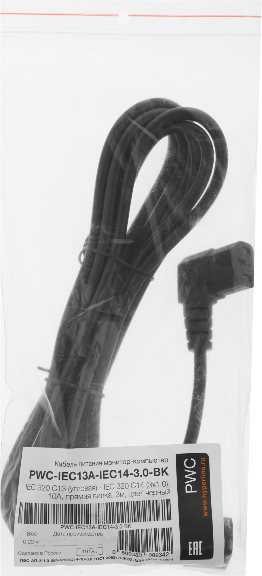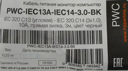 Шнур питания Hyperline PWC-IEC13A-IEC14-3.0-BK