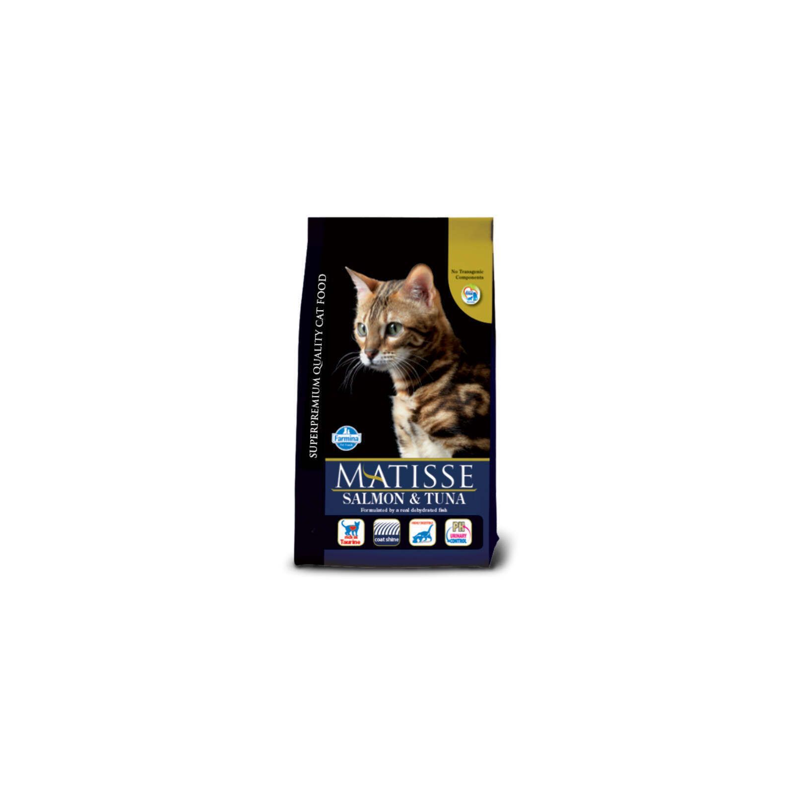 Найулюбленіша їжа котів – риба. Знаючи про це, італійський виробник Farmina розробив якісний смачний корм для дорослих котів. У ньому 20% білка складає риба (тунець і лосось) – будьте певні: ваш вихованець неодмінно оцінить цей корм. Крім відмінного смаку Matisse Cat Salmon & Tuna відрізняється ідеальною збалансованістю всіх компонентів і відмінною засвоюваністю. В основі корму лише якісні, ретельно відібрані інгредієнти, адже філософія компанії – любов та повага до тварин, до їхнього права отримувати якісну корисну та смачну їжу.