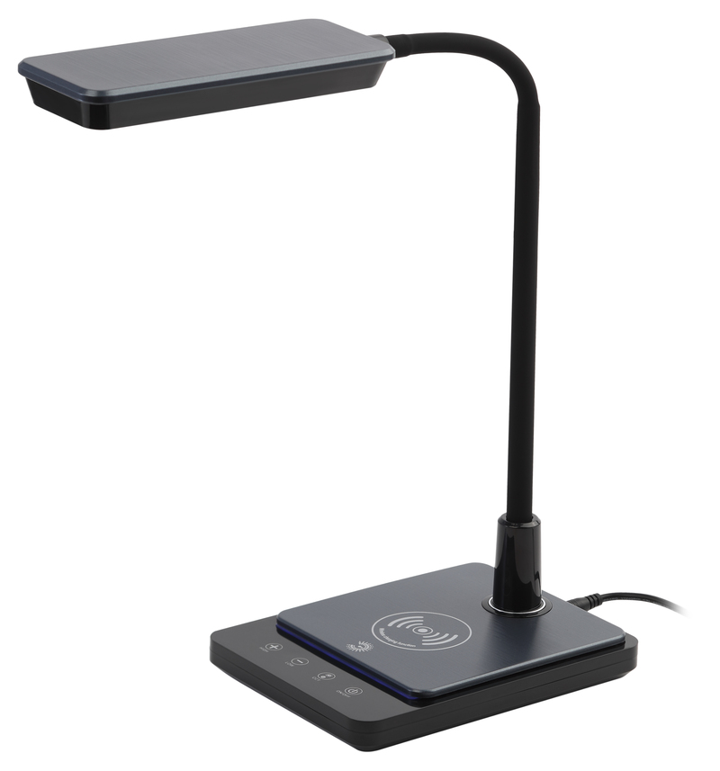 Настольный светильник ЭРА NLED-499-10W-BK со светодиодами (LED) в качестве источников света. Оснащен сенсорным управлением с возможностью выбора цветовой температуры (теплый, нейтральный или холодный свет). Плавный диммер для регулировки яркости. Светильник сохраняет выбранные настройки при включении-выключении. Направление света регулируется наклоном и поворотом плафона в любом направлении. Светильник имеет встроенный модуль Qi для беспроводной зарядки мобильных устройств. Просто положите телефон, поддерживающий функцию Qi, на основание светильника в отмеченной зоне - светильник подзарядит его удобно и быстро.