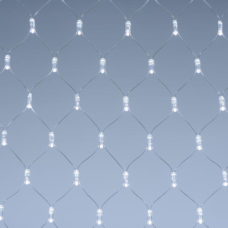 Светодиодная гирлянда СЕТЬ серии CLASSIC. Размер 2000x1500 (длина 1800 мм, высота 1500 мм). Цвет светодиодов БЕЛЫЙ (6000 К), постоянное свечение и 8 динамических эффектов. Провод из прозрачного ПВХ, диаметр 2.3 мм. 288 светодиодов размером 7 мм, прозрачный вогнутый колпачок. Напряжение питания 230 В, потребляемая мощность 18 Вт, степень пылевлагозащиты IP65. Аксессуар для подключения и выбора режима свечения в комплекте.