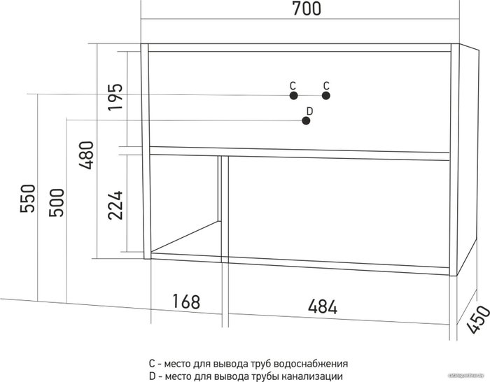 - Ширина тумбы под умывальник 70 см