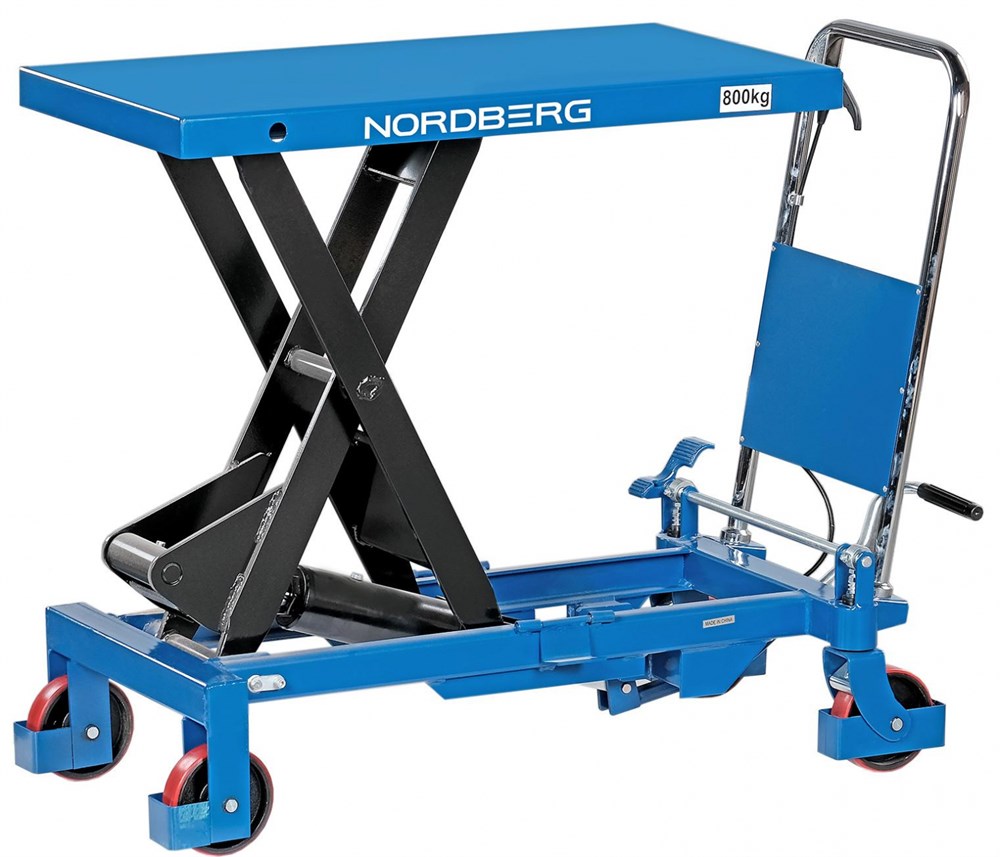 Nordberg N3T801 - универсальное оборудование для перемещения, подъема и опускания грузов весом до 800 кг. Оно состоит из платформенной тележки и стационарного подъемного стола. Благодаря ножному приводу руки оператора всегда остаются свободными.