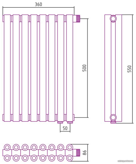 Эстет-00 EU50 500х360 8 секций (матовый черный)