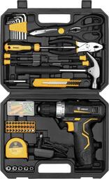 • В комплекте кейс, зарядное устройство, универсальный нож, головка (6,7,8,9,10 мм 1/4"), ключ (шестигранные ключи 1.5-6 мм), держатель бит, переходник (25 мм), отвертка (PH00, 0; SL2,4; 3,0), плоскогубцы, молоток, рулетка (3 м), набор бит (SL3; 4; 5; 6; 6; 7; PH0; 1; 2; 2; 2; 3; 3; PZ0; 1; 2; 2; 2; 3; 3), крепеж (50 шт.), ножницы