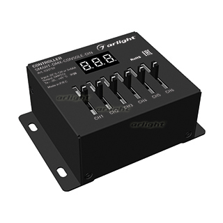 Консольный DMX512 контроллер. Питание DC5-12V либо 3хААА батарейки, выход цифровой сигнал DMX512, 6 каналов управления, терминальные клеммы, XLR3 разъем, цифровой дисплей. Габариты 97х70х40 мм. Корпус - метал. Управляется слайдерными ползунками.