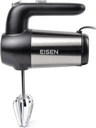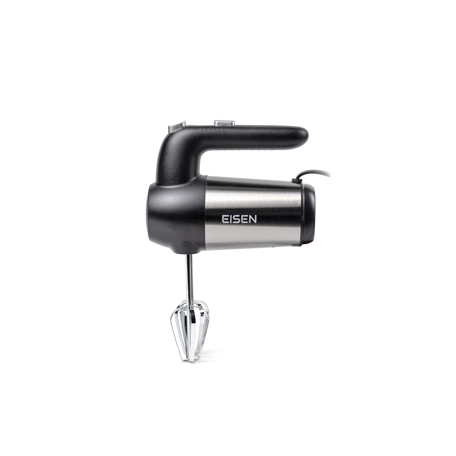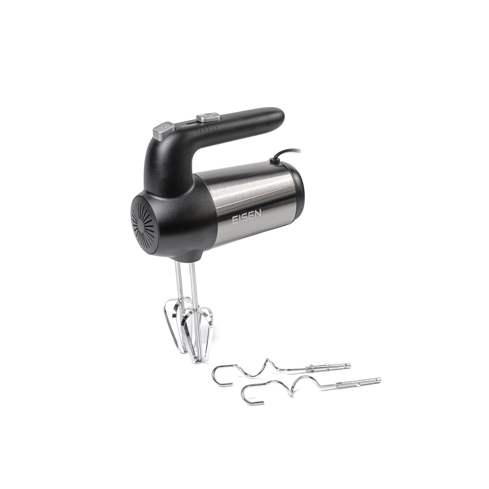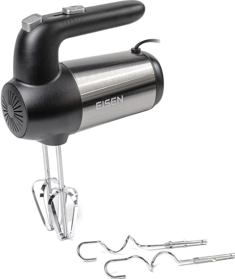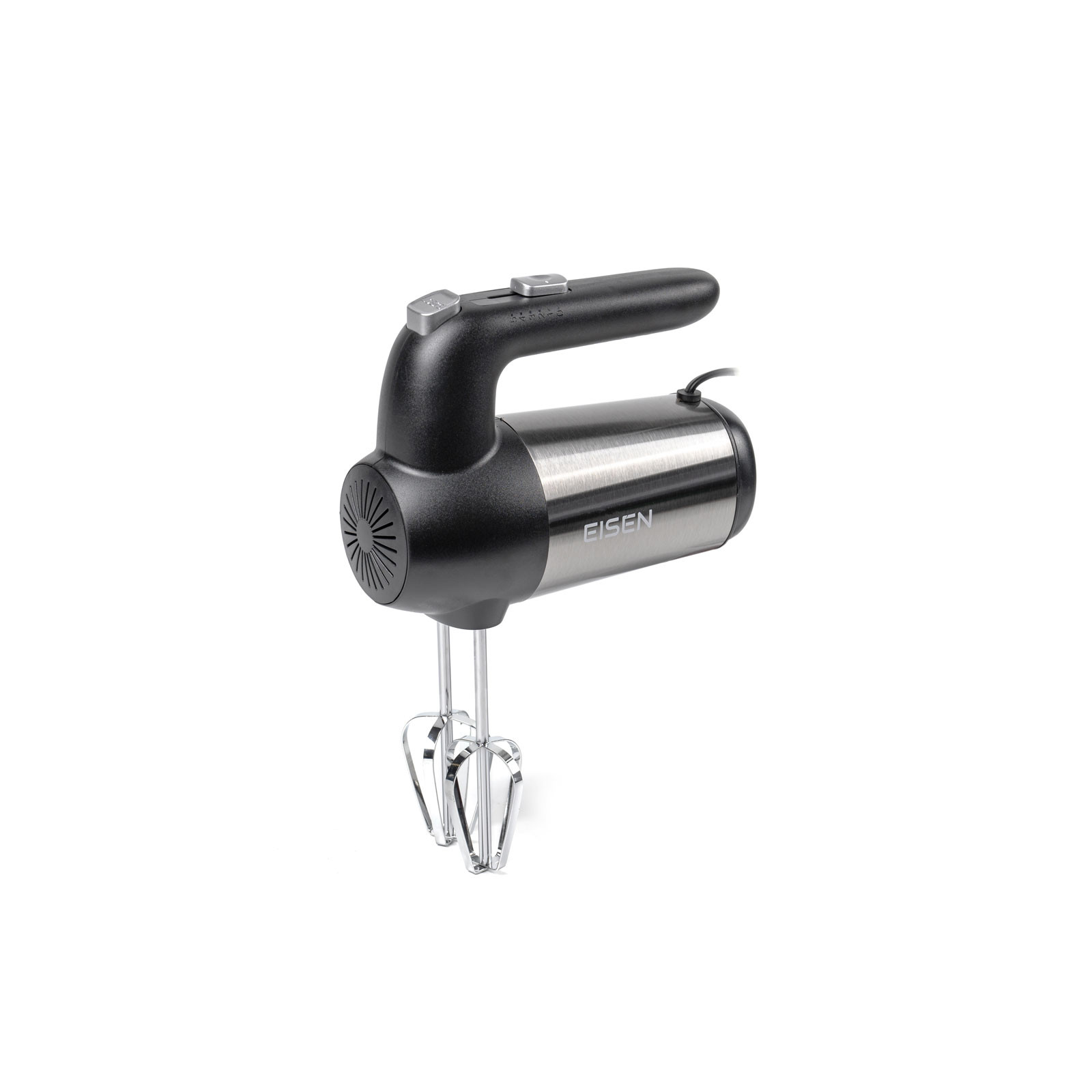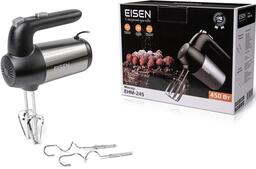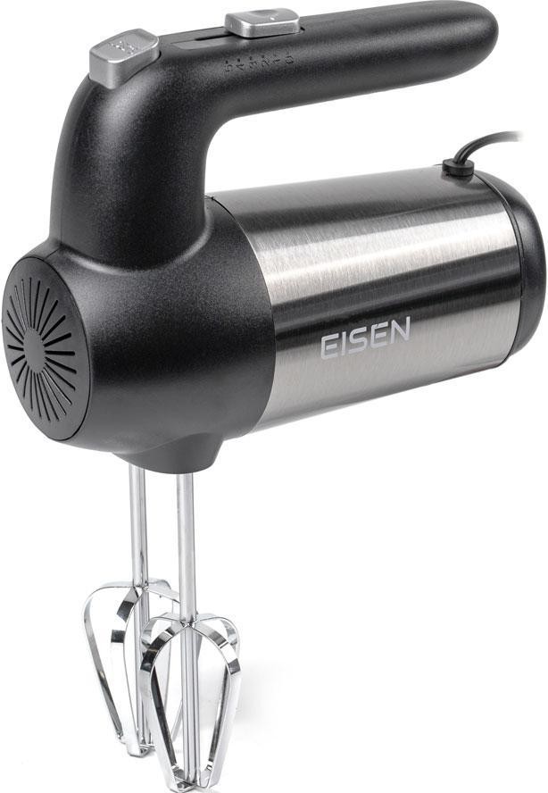 Ультрасучасна модель EISEN EHM-245 представлена у класичному чорному кольорі з ефектними металевими вставками. Корпус міксера виготовлений із якісного зносостійкого пластику, а віночки для збивання та гаки для тесту – хромованої сталі.