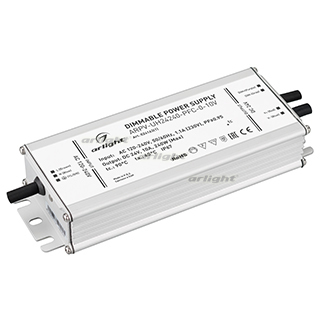 Диммируемый источник напряжения по стандарту 0-10 В с гальванической развязкой для светодиодных изделий. Входное напряжение 120-240 VAC. Выходные параметры: 24 В, 10 А, 240 Вт. Встроенный PFC >0.95. Герметичный алюминиевый корпус IP 67. Рабочая температура -40…+70C°. Габаритные размеры длина 188 мм, ширина 67.5 мм, высота 38.5 мм. Гарантийный срок 7 лет.