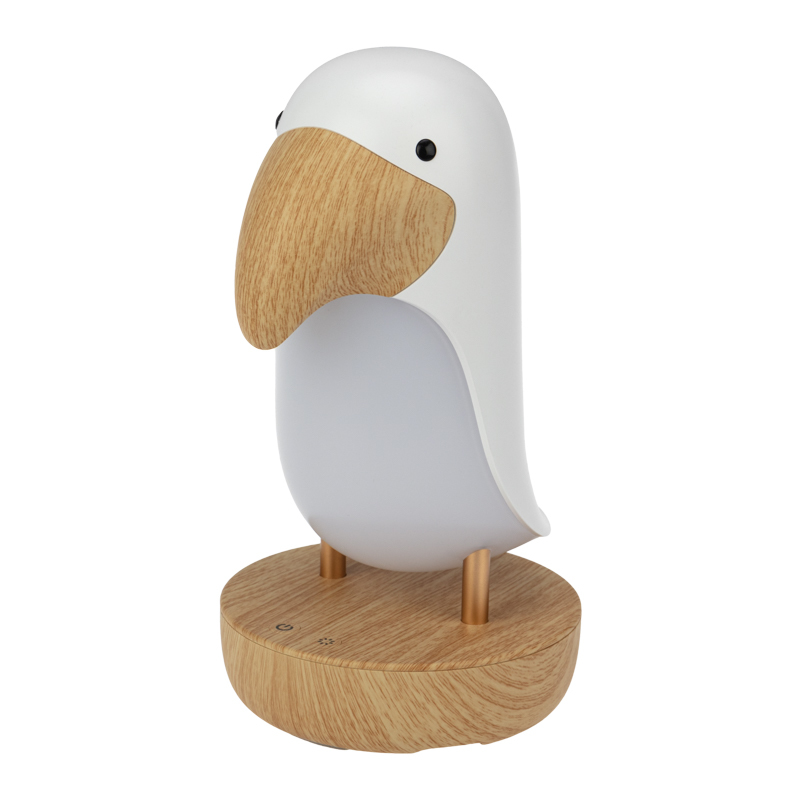 Интерьерный ночник Тукан с теплым белым свечением станет полезным и функциональным подарком. Ночник заряжается с помощью USB-кабеля. Устройство поддерживает соединение по Bluetooth и имеет динамик, что позволяет через телефон включать музыку или сказки. Интересная фигурка с мягким светом и возможностью диммирования - это отличное дополнение прикроватной тумбы или письменного стола.