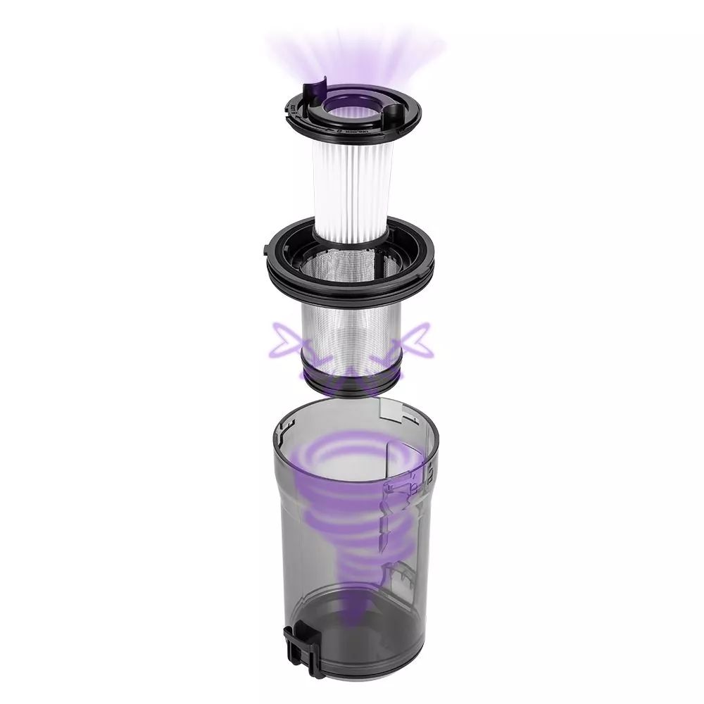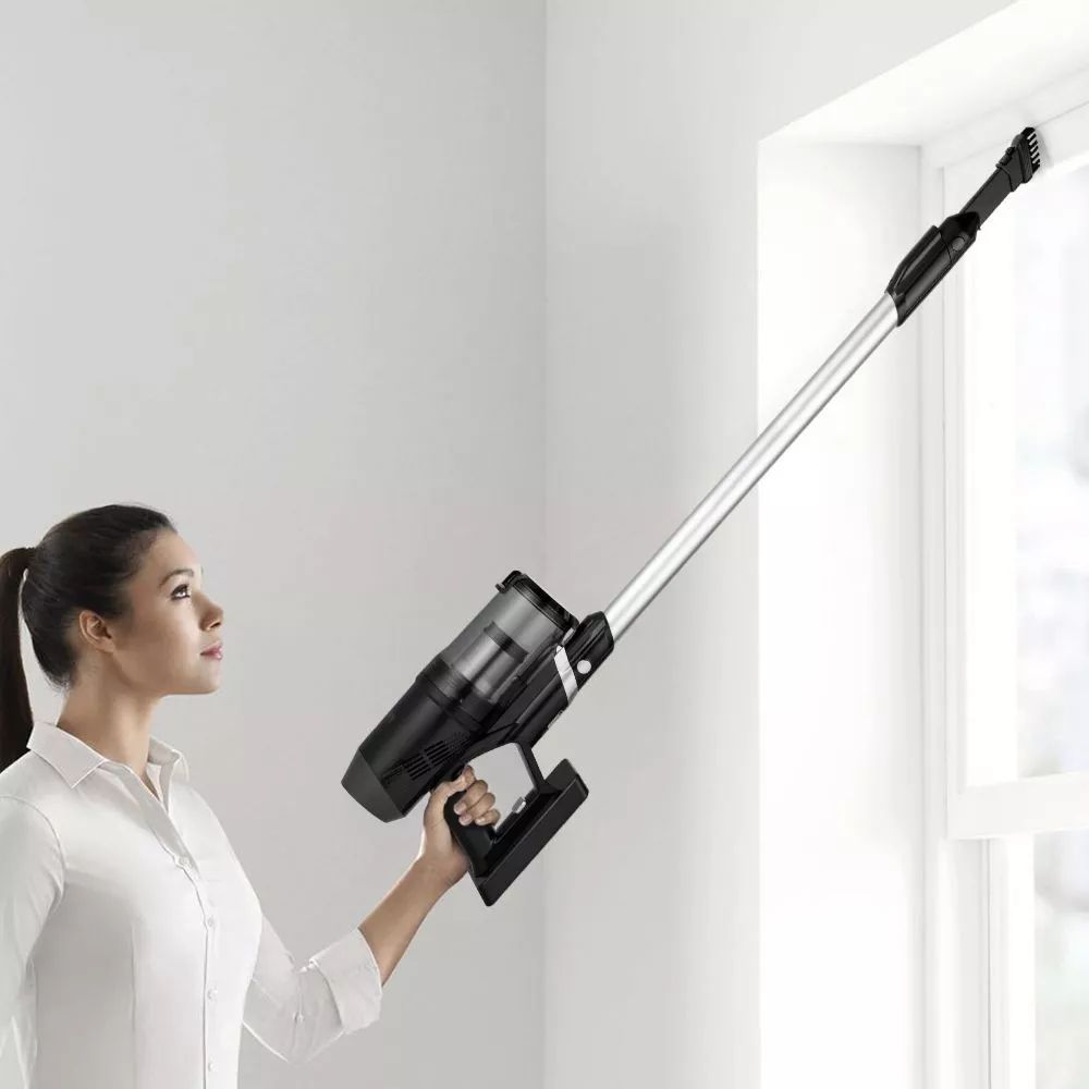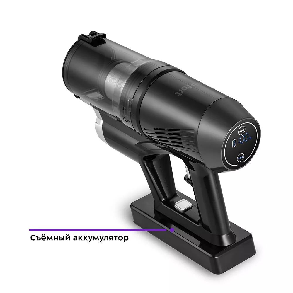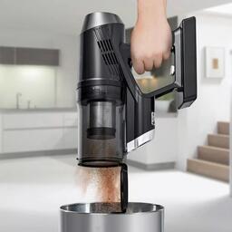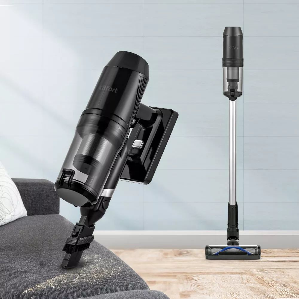 Беспроводной вертикальный пылесос КТ-5127 очень удобен для локальной и генеральной уборки. Он компактен, всегда под рукой и готов к работе. При отсоединении удлинительной трубки и установке насадки он превращается в ручной пылесос. На сенсорной панели управления выберете режим работы пылесоса. Время работы в режиме «Авто» 32 мин, в режиме «По умолчанию» 25 мин, в режиме «Турбо» 20 мин. Уровень заряда аккумулятора отображается на панели управления в виде горящих делений батареи. Насадка «2 в 1» сочетает в себе узкую насадку для труднодоступных мест и ворсовую щетку. Если вам нужно вычесать волосы с ворсистого ковра, нажмите на кнопку фиксации ворсовой щетки и переместите её в верхнюю часть насадки. Щётка для пола с V-образной турбощёткой помогает качественно справиться с очисткой гладких поверхностей и ковровых покрытий с не очень длинным ворсом. Щётка оснащена светодиодной лампой для подсветки зоны уборки. Лампа загорается при включении пылесоса. С удлинительной трубкой можно использовать любую насадку из комплекта. Благодаря чему можно убрать пыль из всех труднодоступных мест. Пылесос оборудован циклонной системой фильтрации, обеспечивающей постоянную мощность всасывания независимо от наполненности пылесборника.