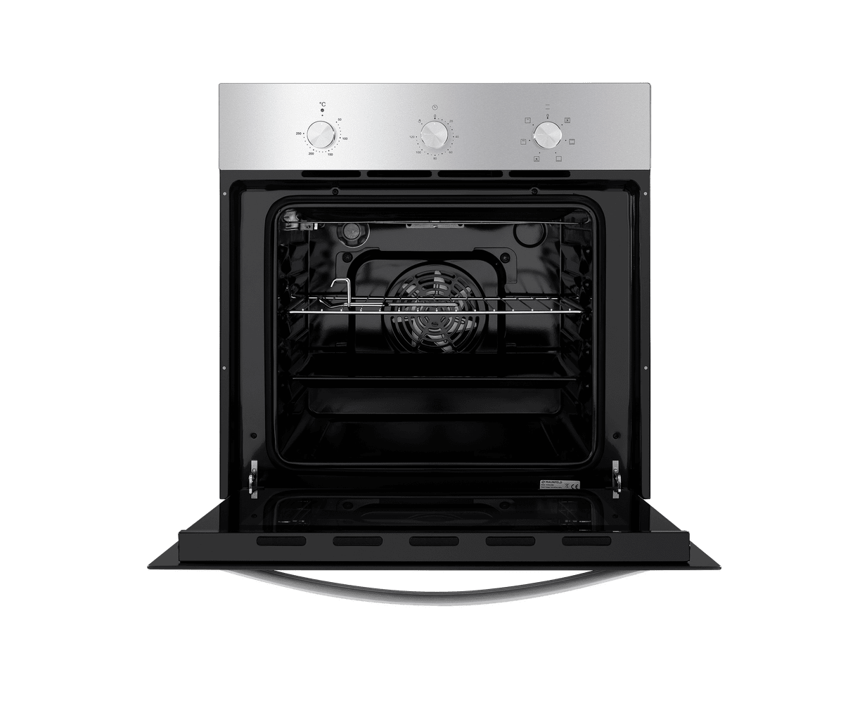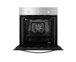 Механическое управление работой духовки осуществляется цельнометаллическими поворотными ручками. Можно выбирать режим работы, температуру (50°-250°C) и устанавливать таймер (до 120 мин). В данной модели поддерживается 6 функций: внутреннее освещение, традиционный нагрев, гриль, нижний нагрев, конвекционный нагрев, пицца.