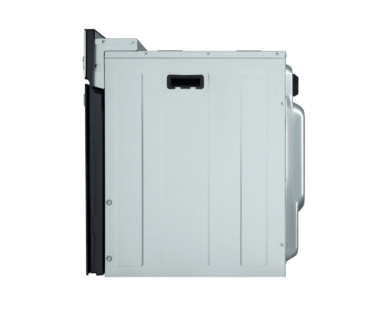 Фронтальная панель дверцы сделана из высококачественного жаропрочного тонированного стекла. Панель управления из полированной нержавеющей стали имеет специальное покрытие от отпечатков пальцев. Цельнометаллическая ручка дверцы остается холодной в процессе готовки. Внутреннее покрытие камеры выполнено из специальной легкоочищающейся эмали черного цвета.
