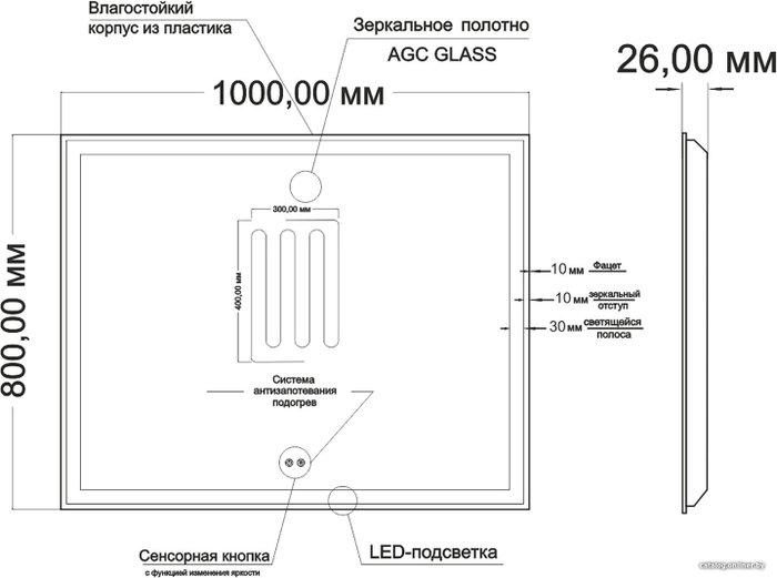 • Функциональные особенности подогрев (антизапотеватель), сенсорное управление