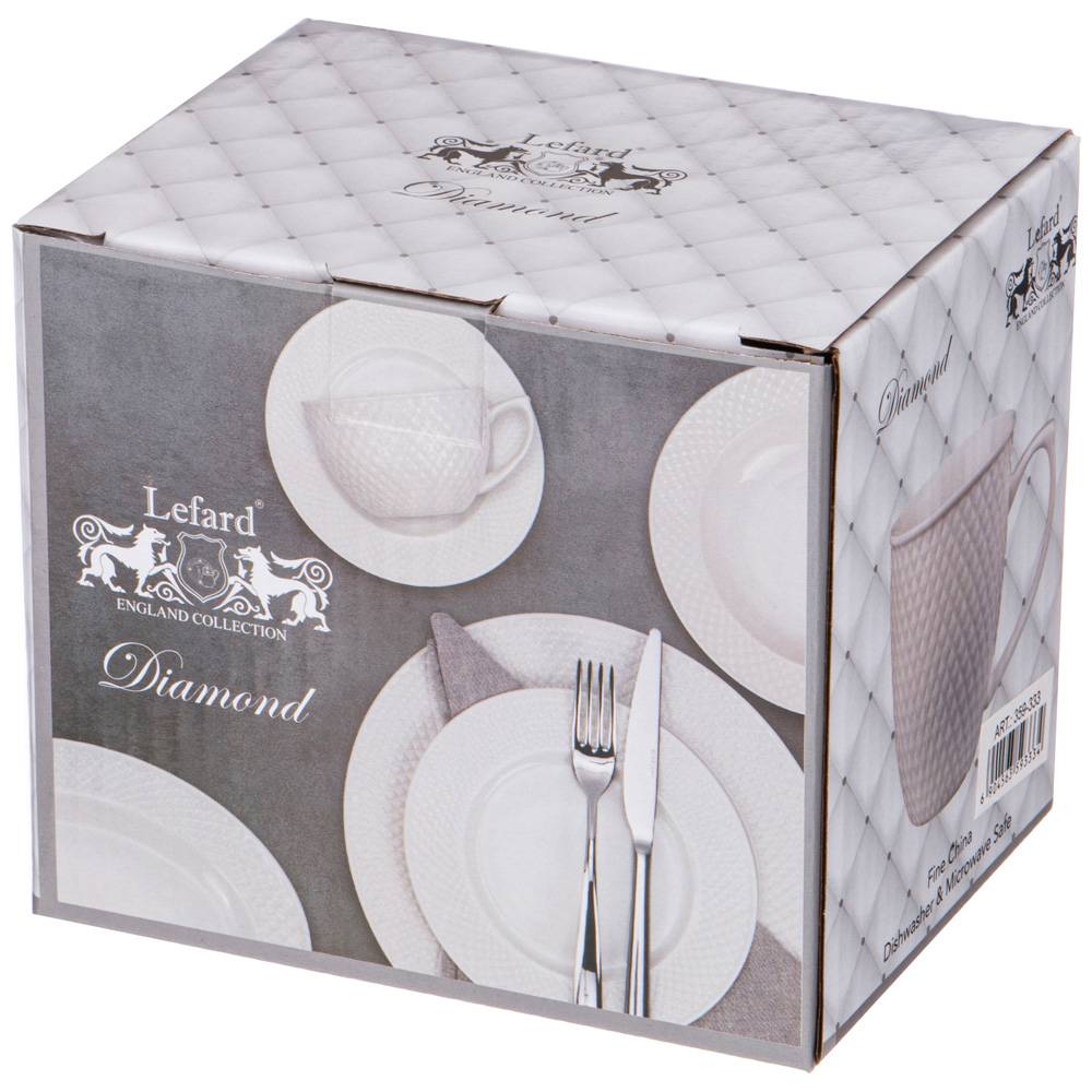 TM Lefard коллекция "Диаманд" - посуда и предметы сервировки из белого фарфора с рельефом. Изделия выполнены из упрочненного фарфора. Стильная упаковка. Идеальная сервировка праздничного и ежедневного стола. Отличный подарок! Продукция сертифицирована, безопасна для контакта с пищевыми продуктами. Можно ставить в микроволновую печь и мыть в посудомоечной машине.