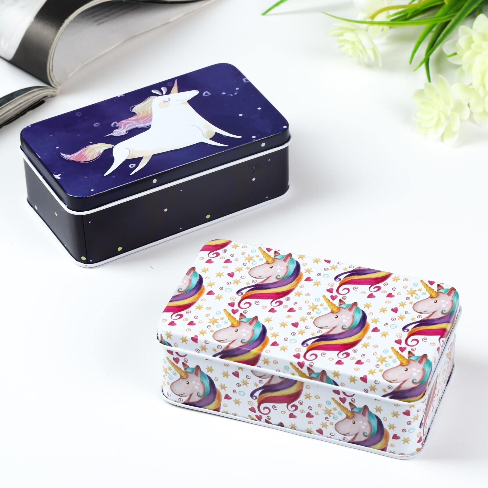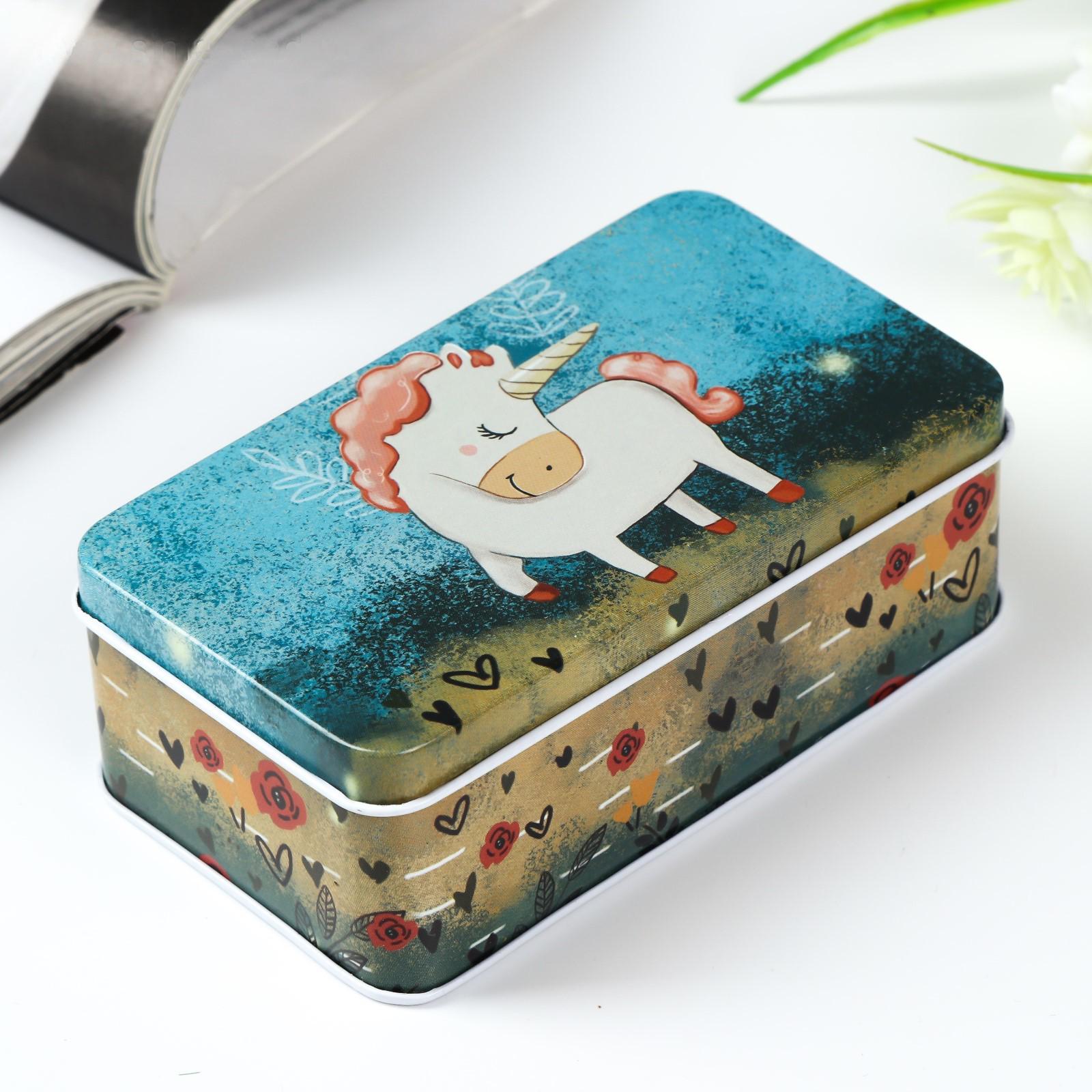 Шкатулка металл прямоугольник "Единорог" МИКС 4х6,5х11,5 см