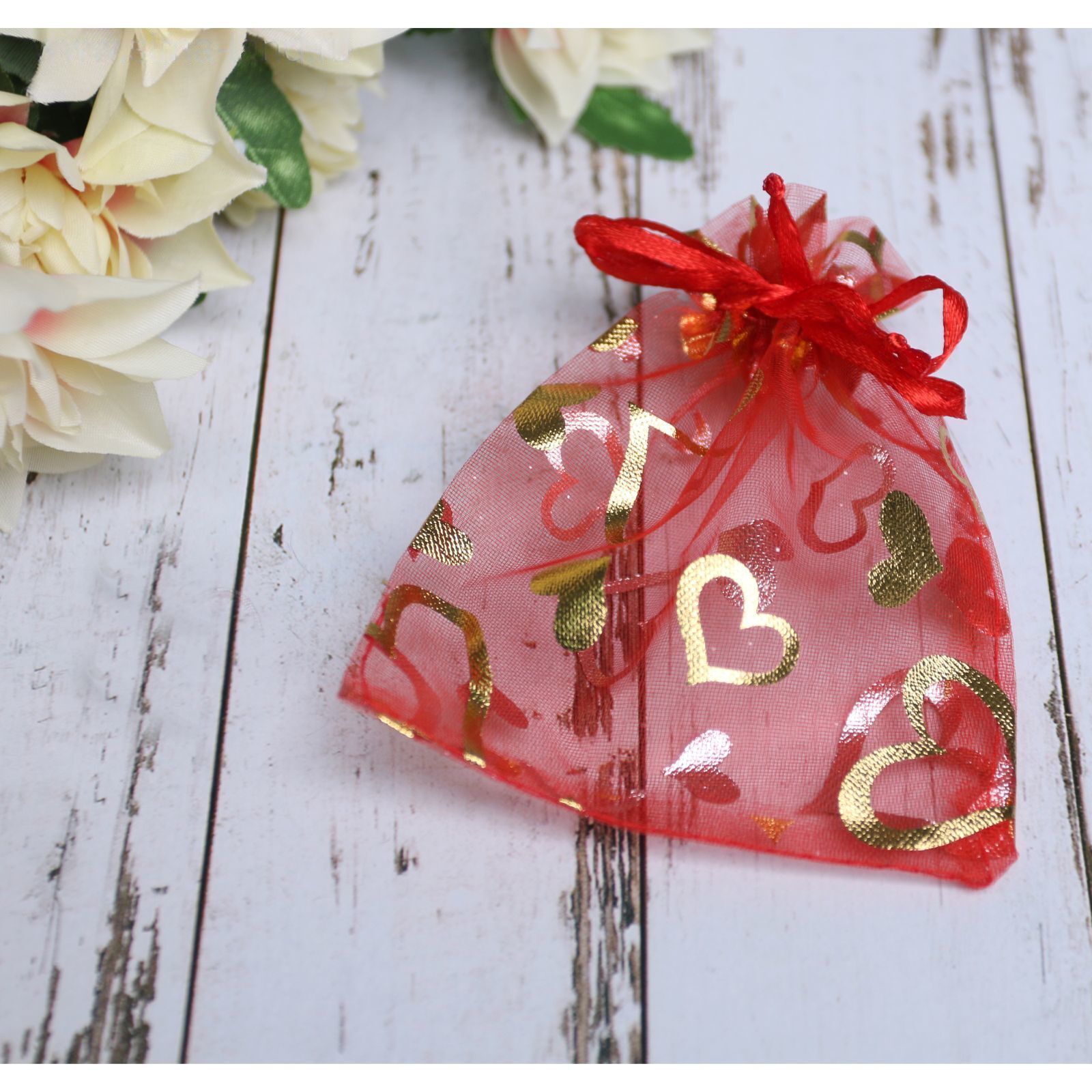 Мешочек подарочный "Сердечки", 10*12, цвет красный с золотом