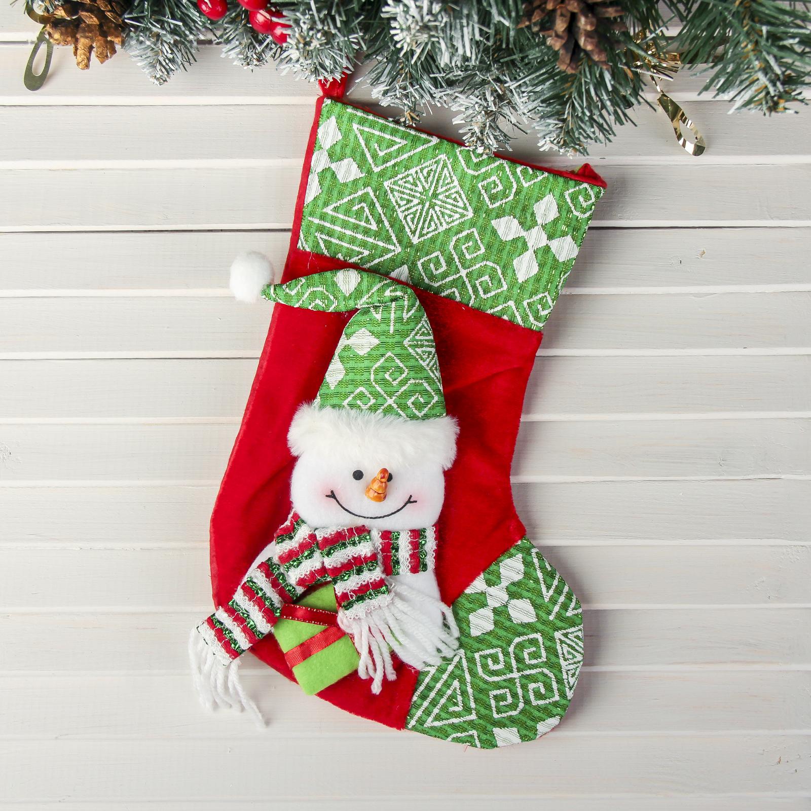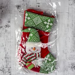 Носок для подарков "Подарочек" Снеговик, 18х25 см, красно-зелёный