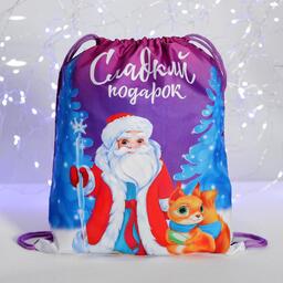 Сумка под сладости "Сладкий подарок". Хорошо подходит для новогодних подарков. Вмещает множество кондитерских изделий. Праздничный дизайн непременно придаст подарку презентабельный вид. Размер: 290 х 340 мм.