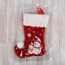 Носок для подарков "Волшебство" Снеговики, 18х25 см, бело-красный