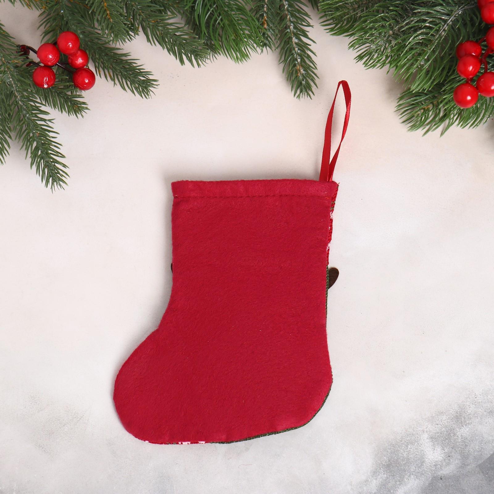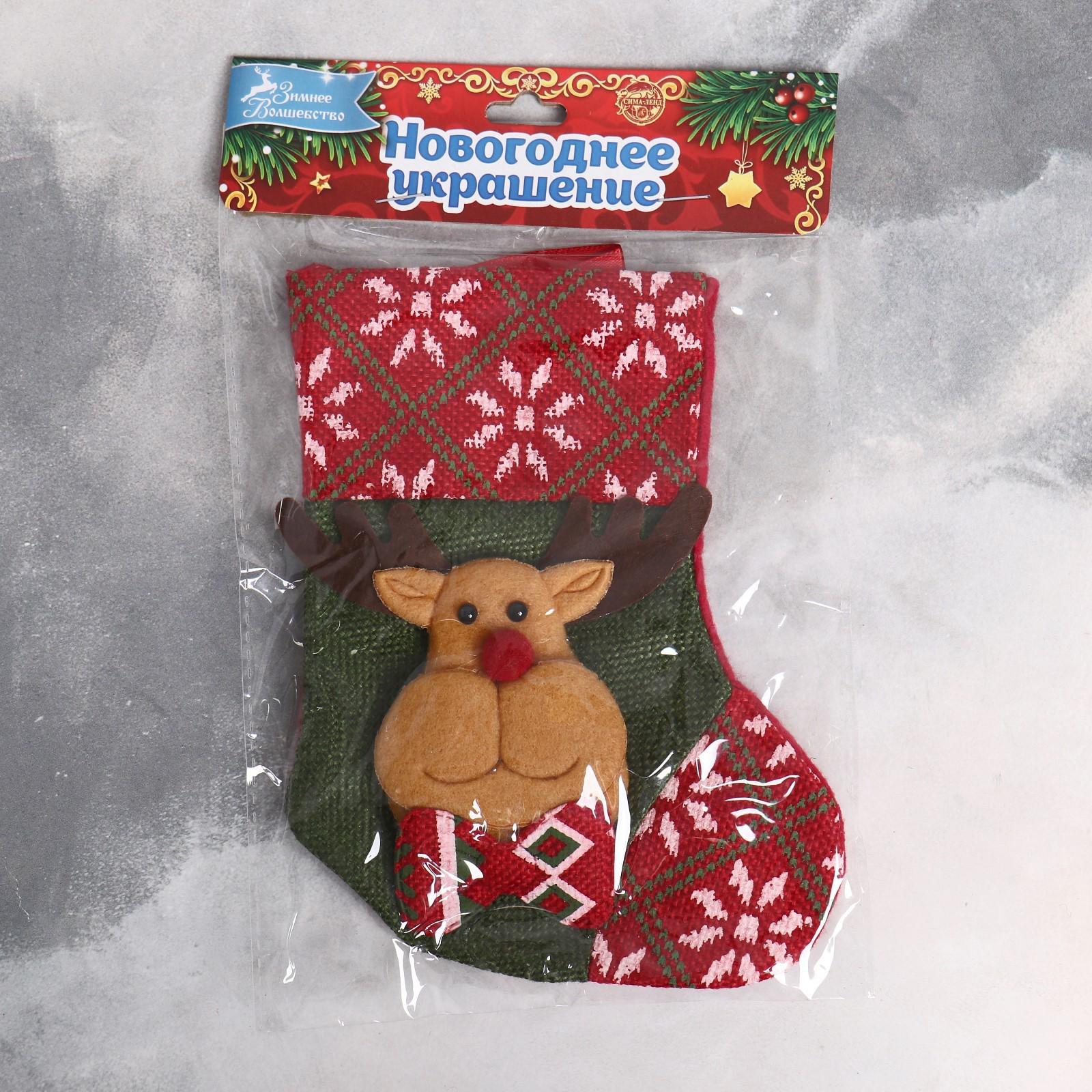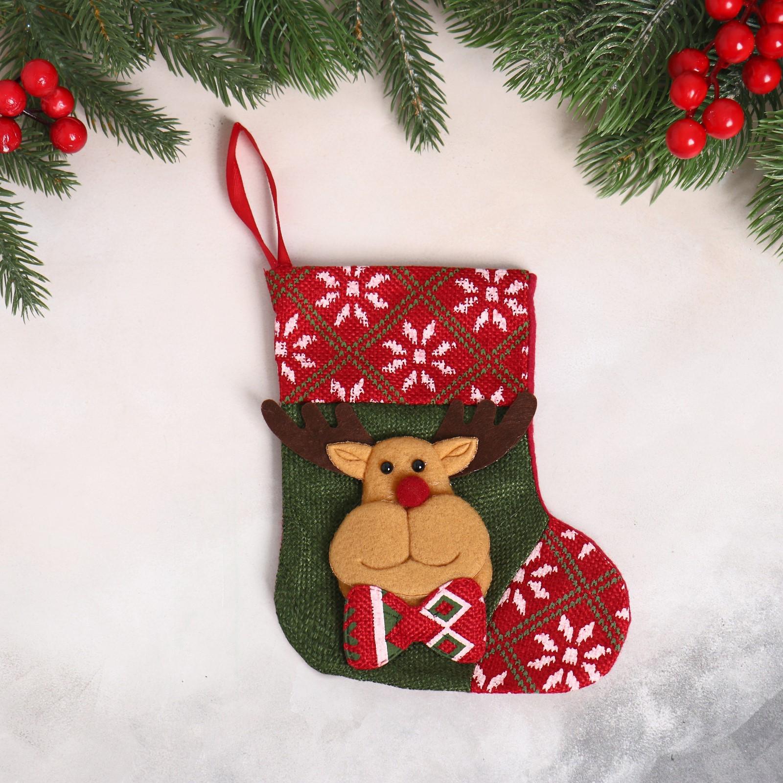 Мягкая подвеска "Носок - олень с бабочкой" 13х17 см, бордовый