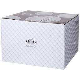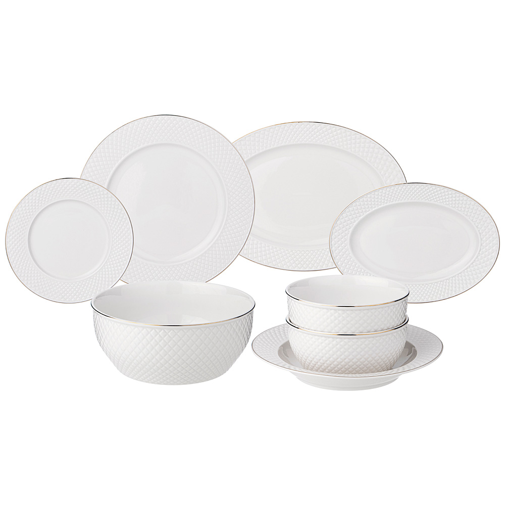 Комплектность: тарелка обеденная 26 см – 6 шт., тарелка суповая 23 см – 6 шт, тарелка закусочная 19 см – 6 шт., салатник 17,5 см – 1шт., салатник 14,5 см – 2 шт., блюдо овальное 30*22 см – 1 шт., блюдо овальное 26*18 см – 1 шт.