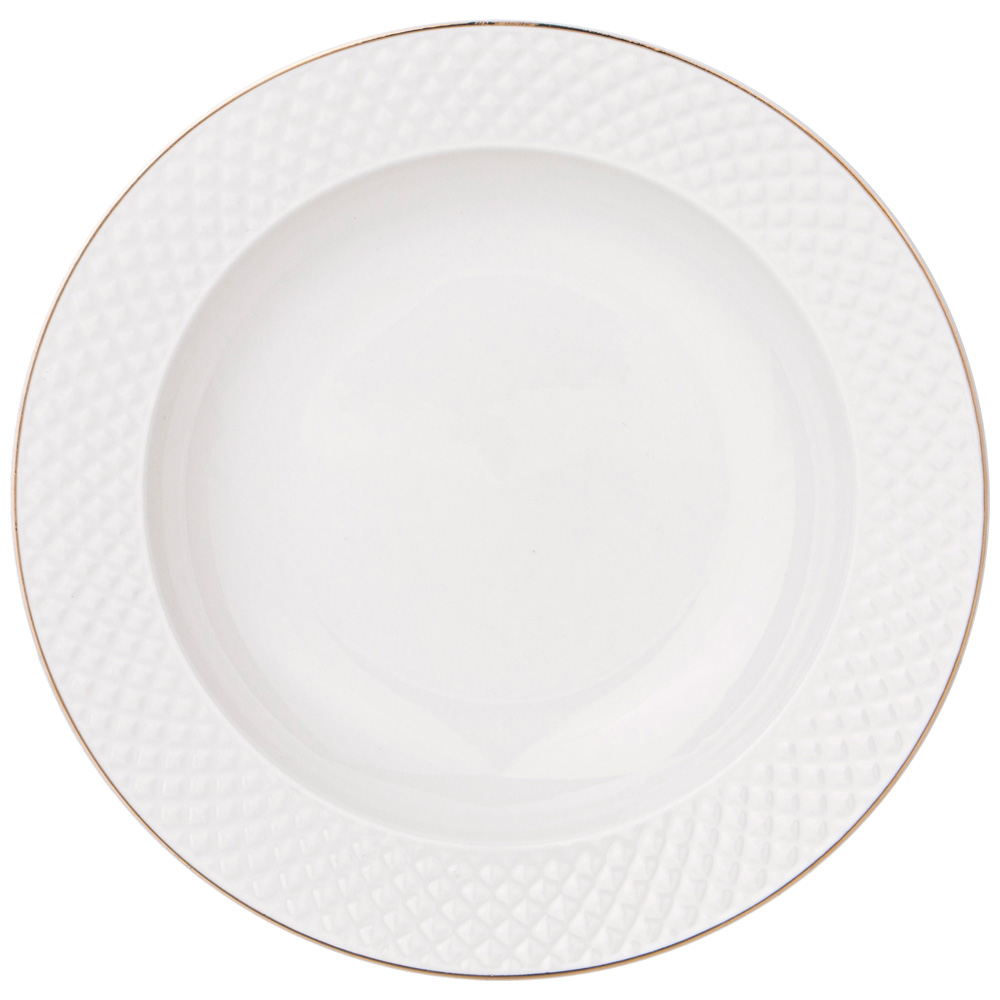 TM Lefard коллекция "Диаманд Голд" - посуда и предметы сервировки из белого фафора с золотой каймой. Изделия выполнены из упрочненного фарфора. Стильная упаковка. Идеальная сервировка праздничного и ежедневного стола. Отличный подарок! Продукция сертифицирована и безопасна для контакта с пищевыми продуктами. Нельзя ставить в микроволновую печь, не рекомендуется мыть в посудомоечной машине.