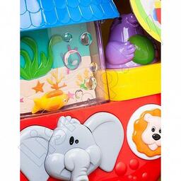 Игровой набор Kiddieland 029645 Корабль с мыльными пузырями представляет собой игрушку на присосках и раствор для мыльных пузырей.С помощью жирафа-ковшика малыш нальет воду в прозрачный аквариум и увидит, как в нем плавает маленькая рыбка. Вода выливается через хобот слоника и льется на крутящееся водяное колесо. При нажатии на забавного морского котика брызгает вода, а из большой пасти бегемота вылетают мыльные пузыри! Игрушка на присосках легко крепится к любой гладкой поверхности.