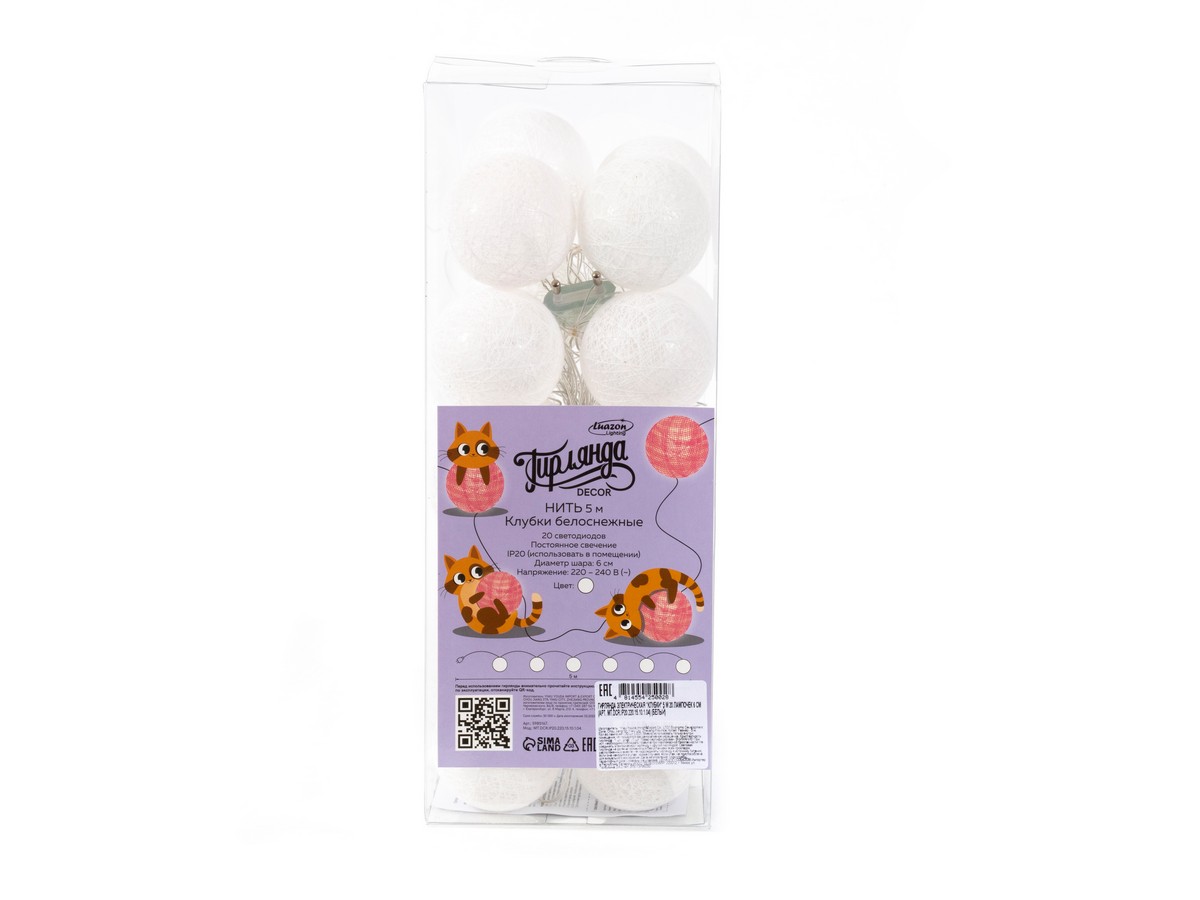 ГИРЛЯНДА электрическая “Клубки” 5 м 20 лампочек 6 см (арт. MT. DCR. IP20.220.15.10.1.05) (Теплый белый)