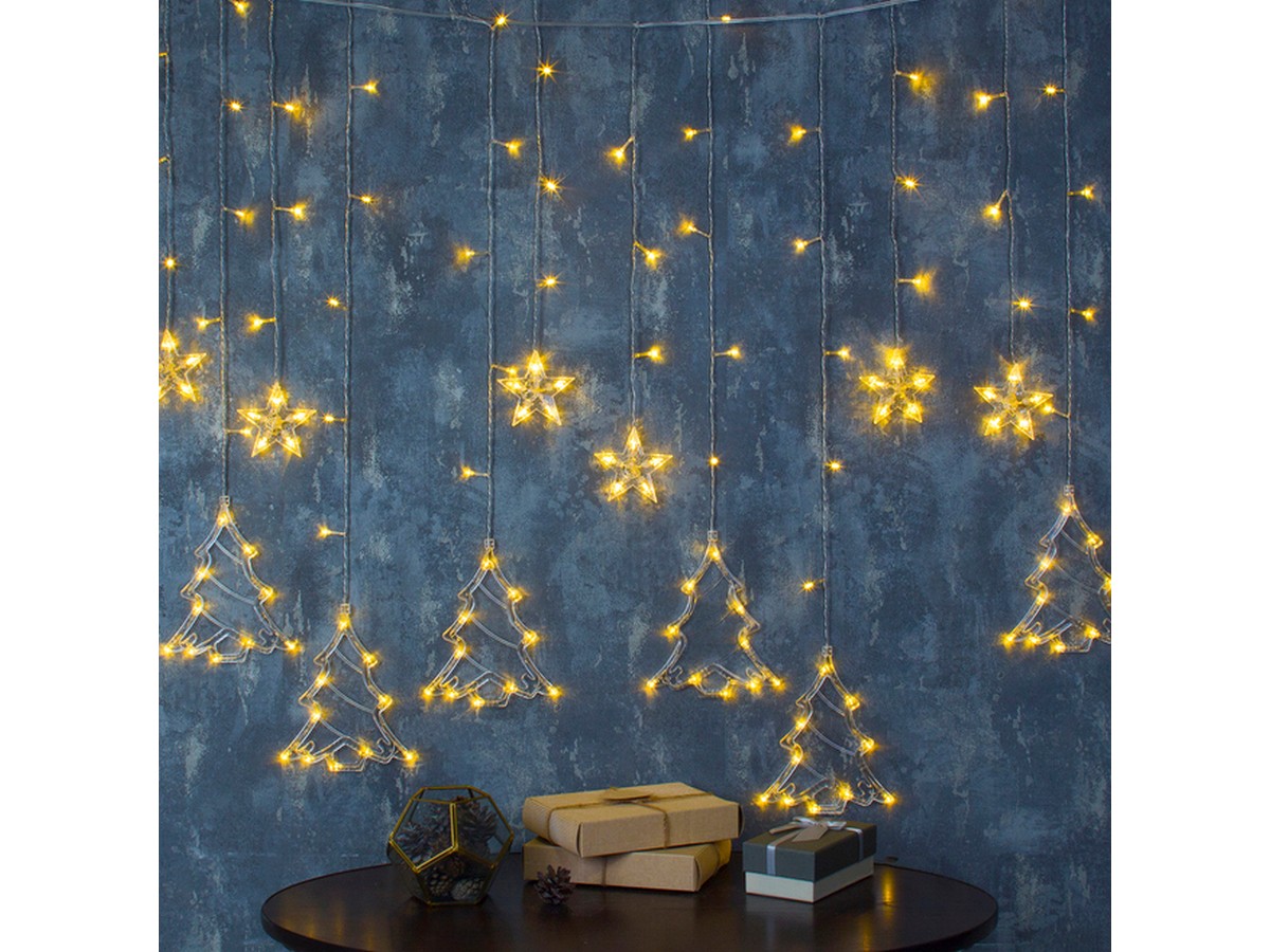 ГИРЛЯНДА электрическая “Бахрома. Елки” 2,4*0,9 м 138 лампочек (арт. BH. DECOR. IP20.220.08.28.1.03) (Теплый белый)