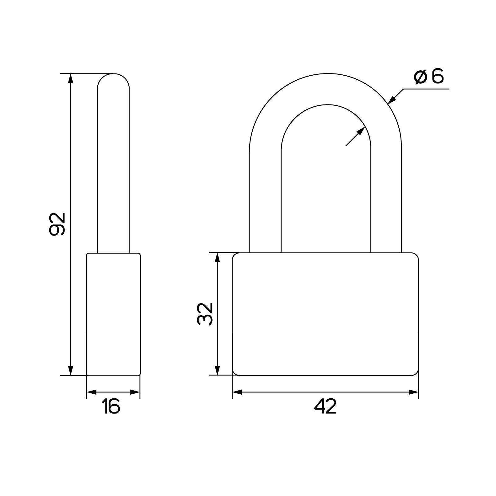 Замок навесной, тип 6, 6х50 мм, длинная дужка