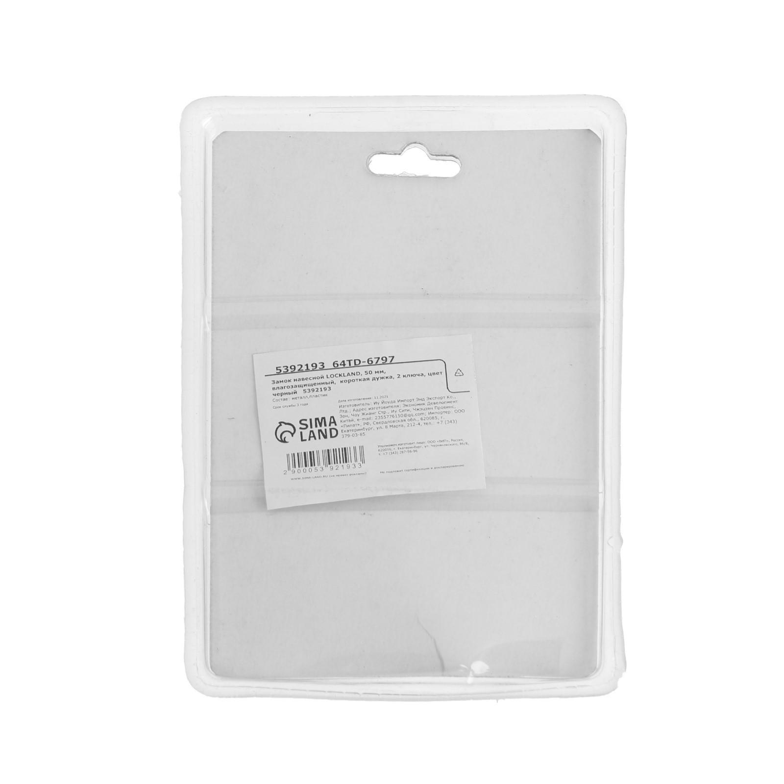 Замок навесной LOCKLAND, 50 мм, влагозащищенный, короткая дужка, 2 ключа, цвет черный