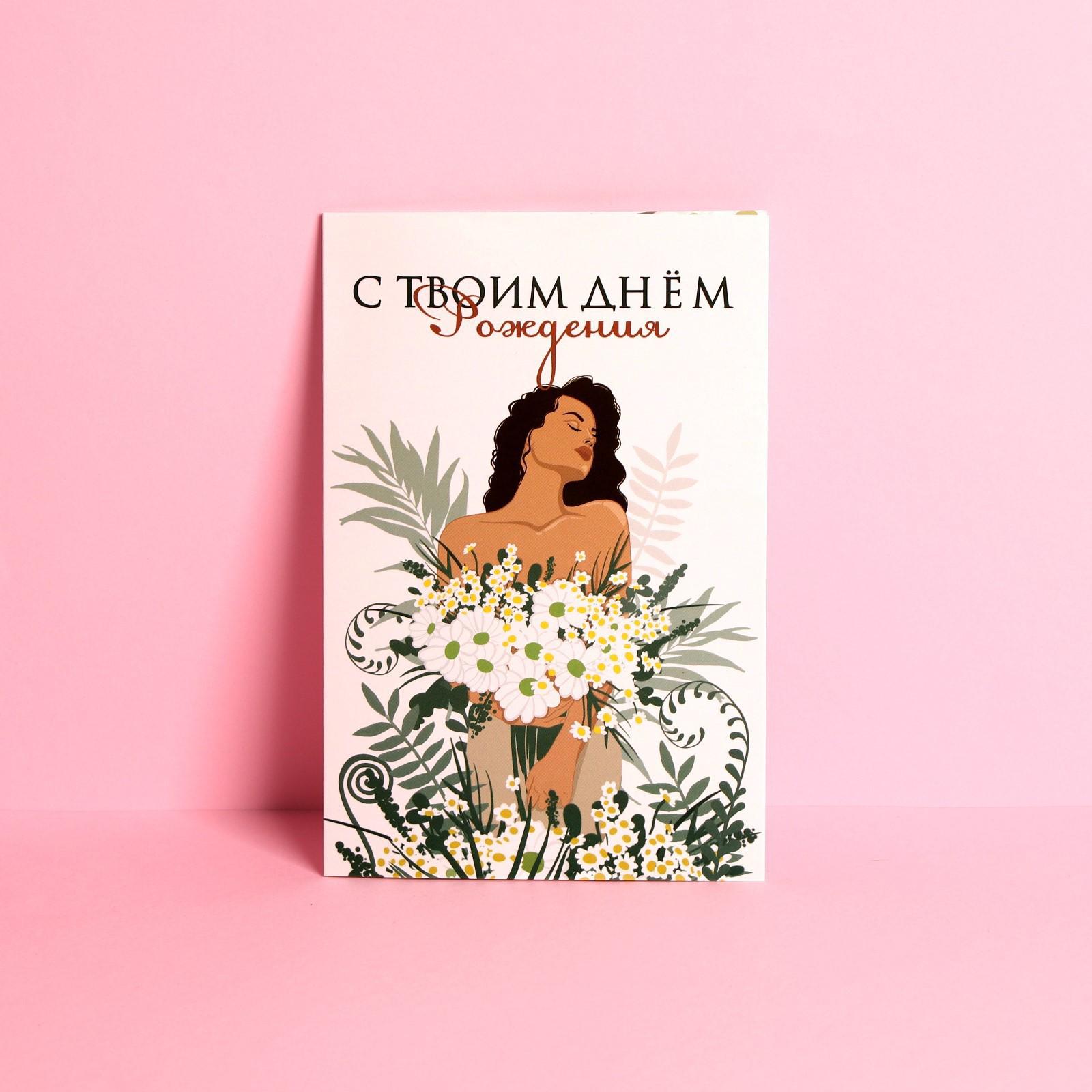 Открытка средняя «С твоим днем», девушка, 12 × 18 см