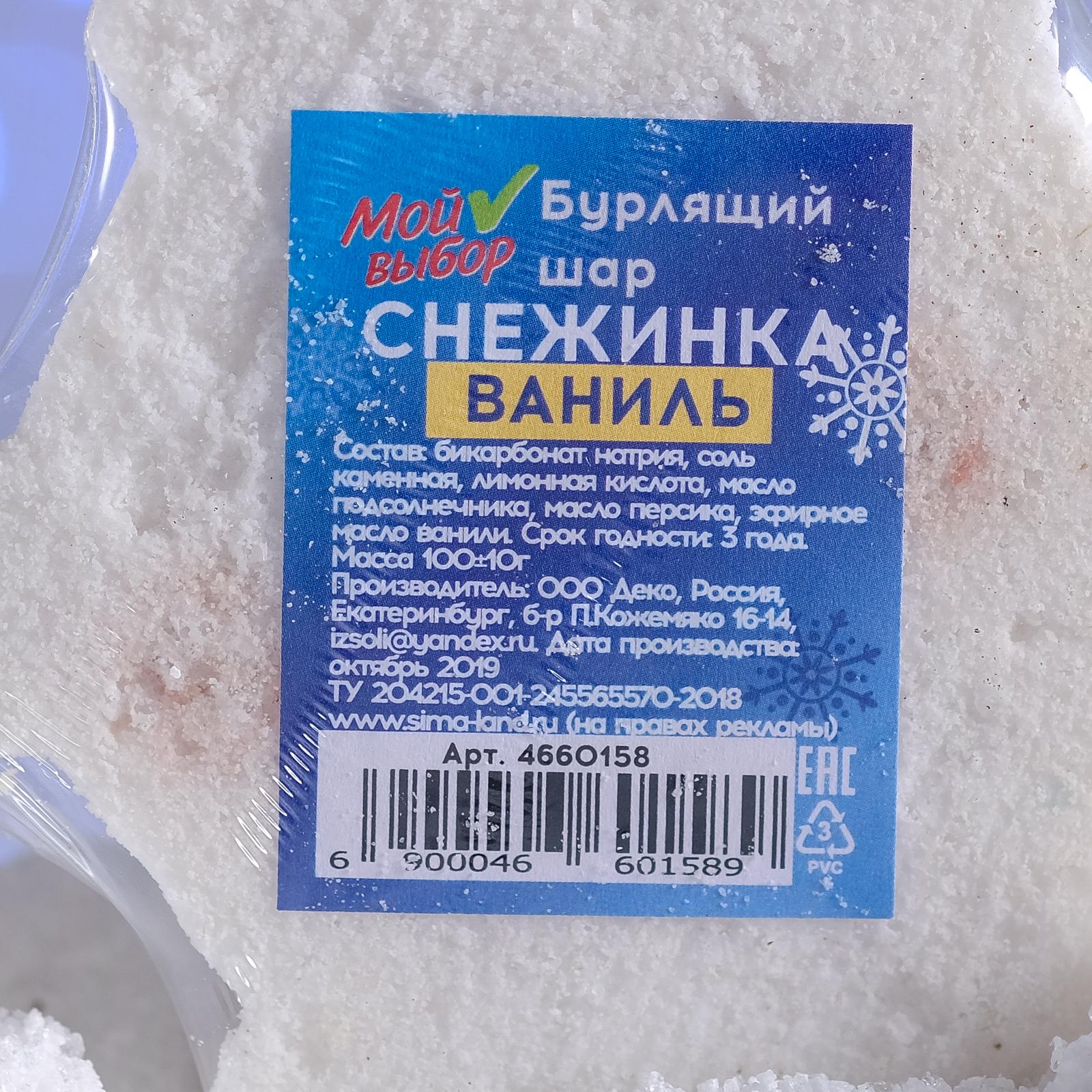 Бомбочка для ванн «Снежинка», белая, с ароматом ванили, 100 г