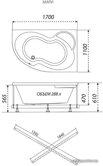 - Глубина ванны 47 см