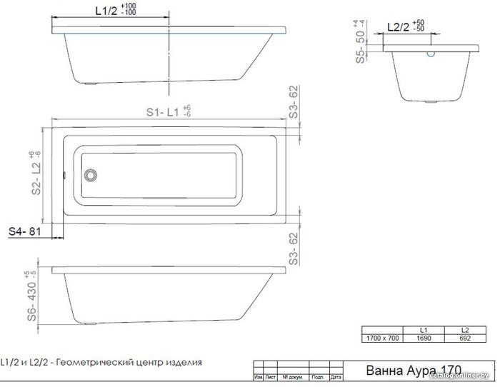 Аура 170х70 (с каркасом, сифоном, экраном)