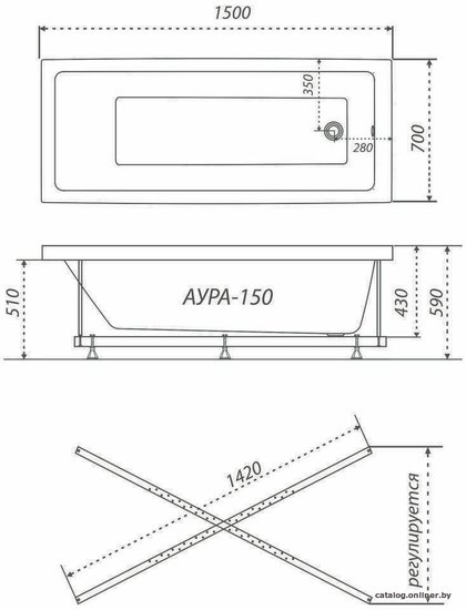 Аура 150х70 (с каркасом, сифоном, экраном и торцевым экраном)