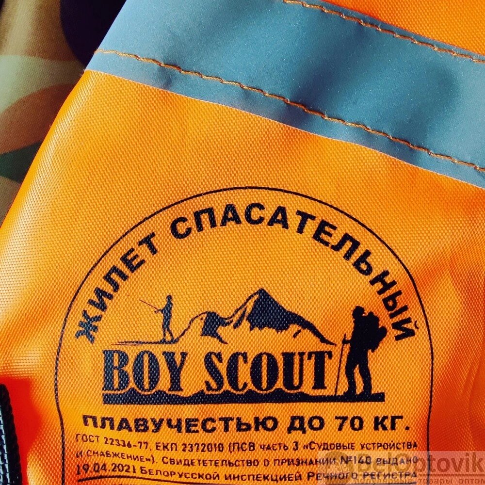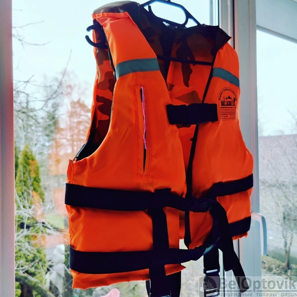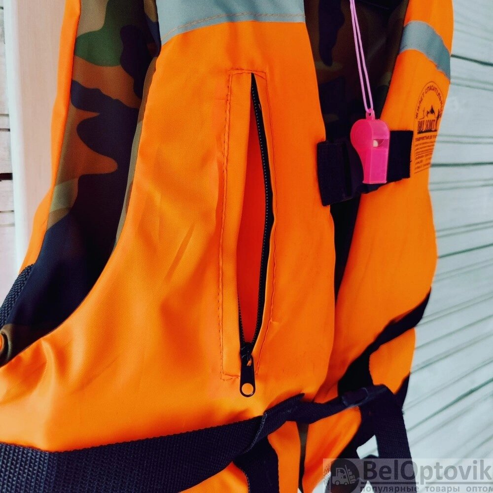 Жилет спасательный с подголовником (с наполнителем, ткань Oxford, оранж. хаки). Имеет доступ На вес до 130 кг