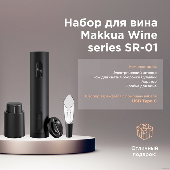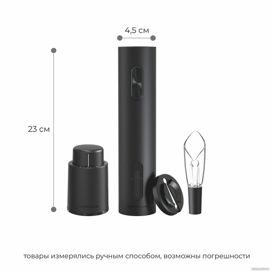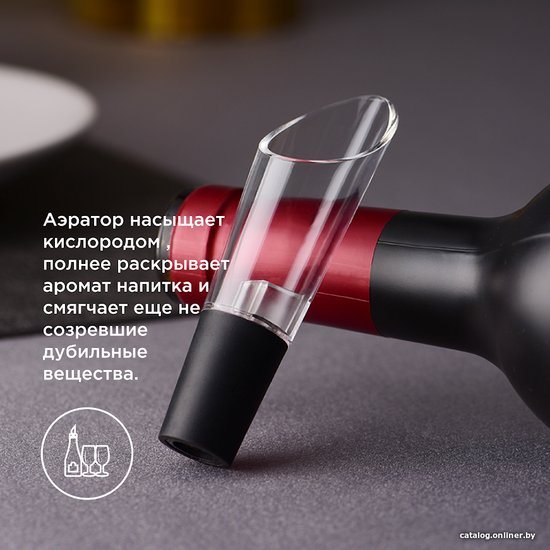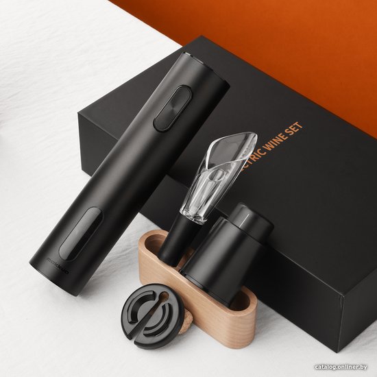 • Состав набора электроштопор, аэратор, нож для горлышка бутылки, подставка, пробка для бутылки