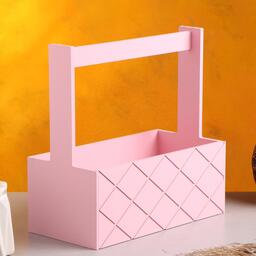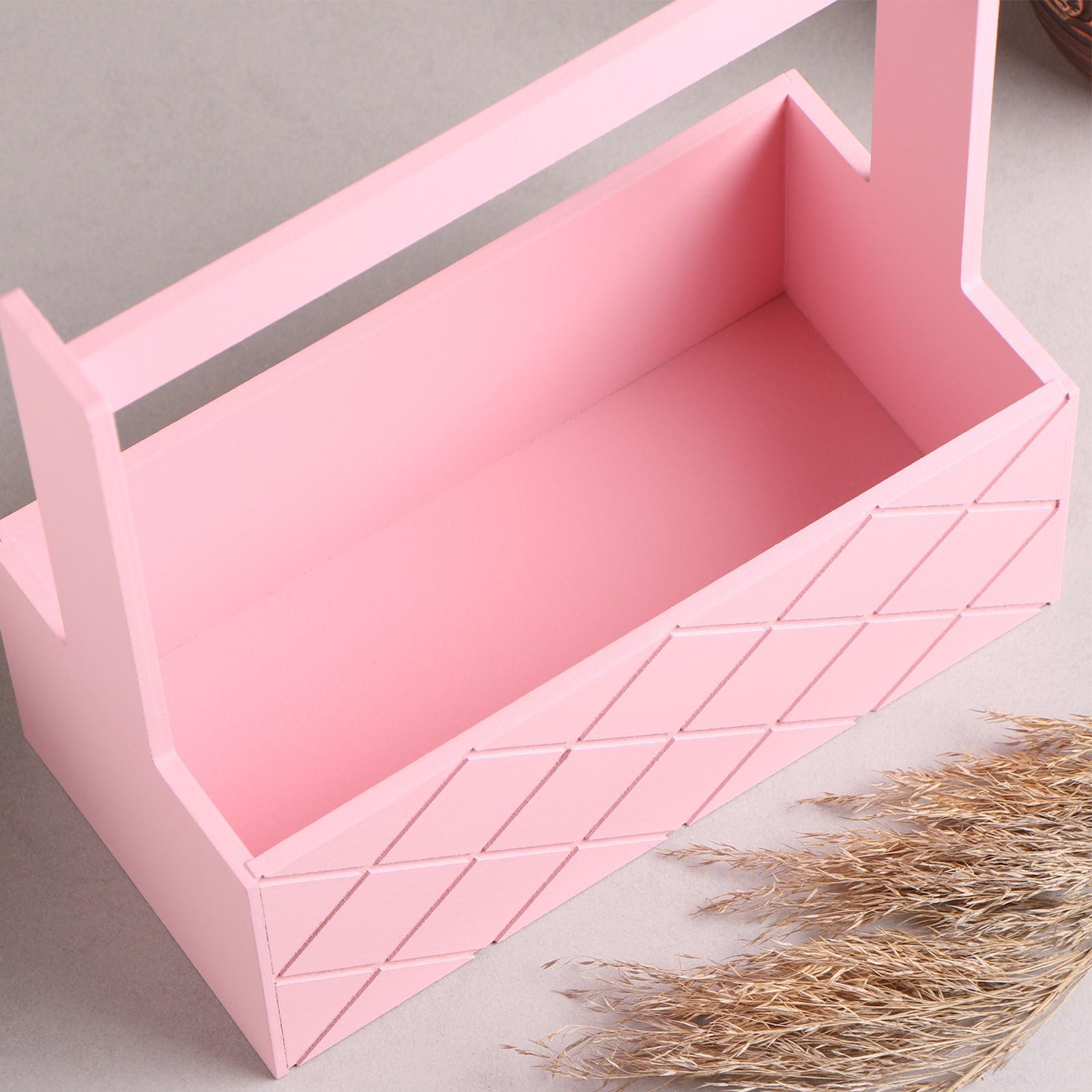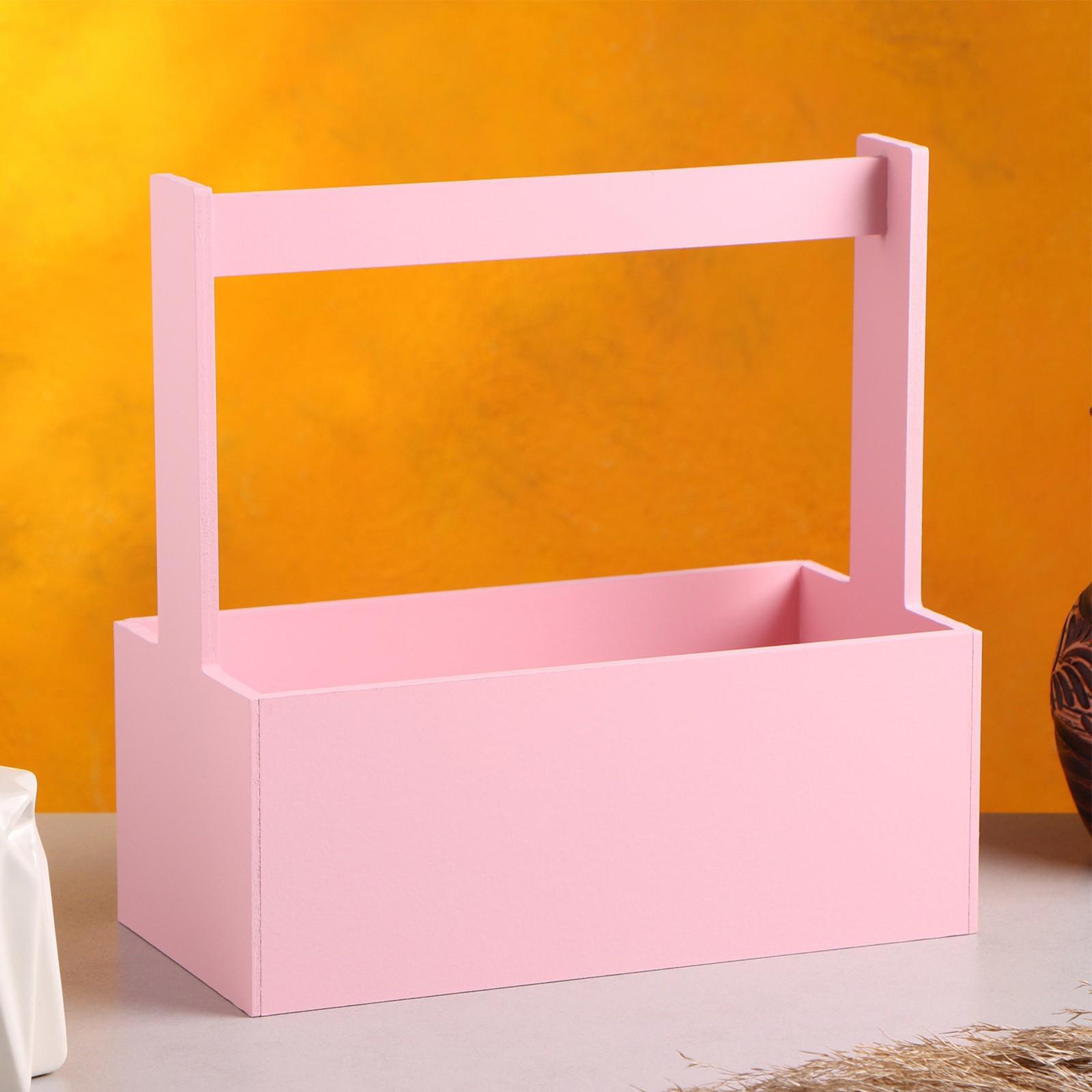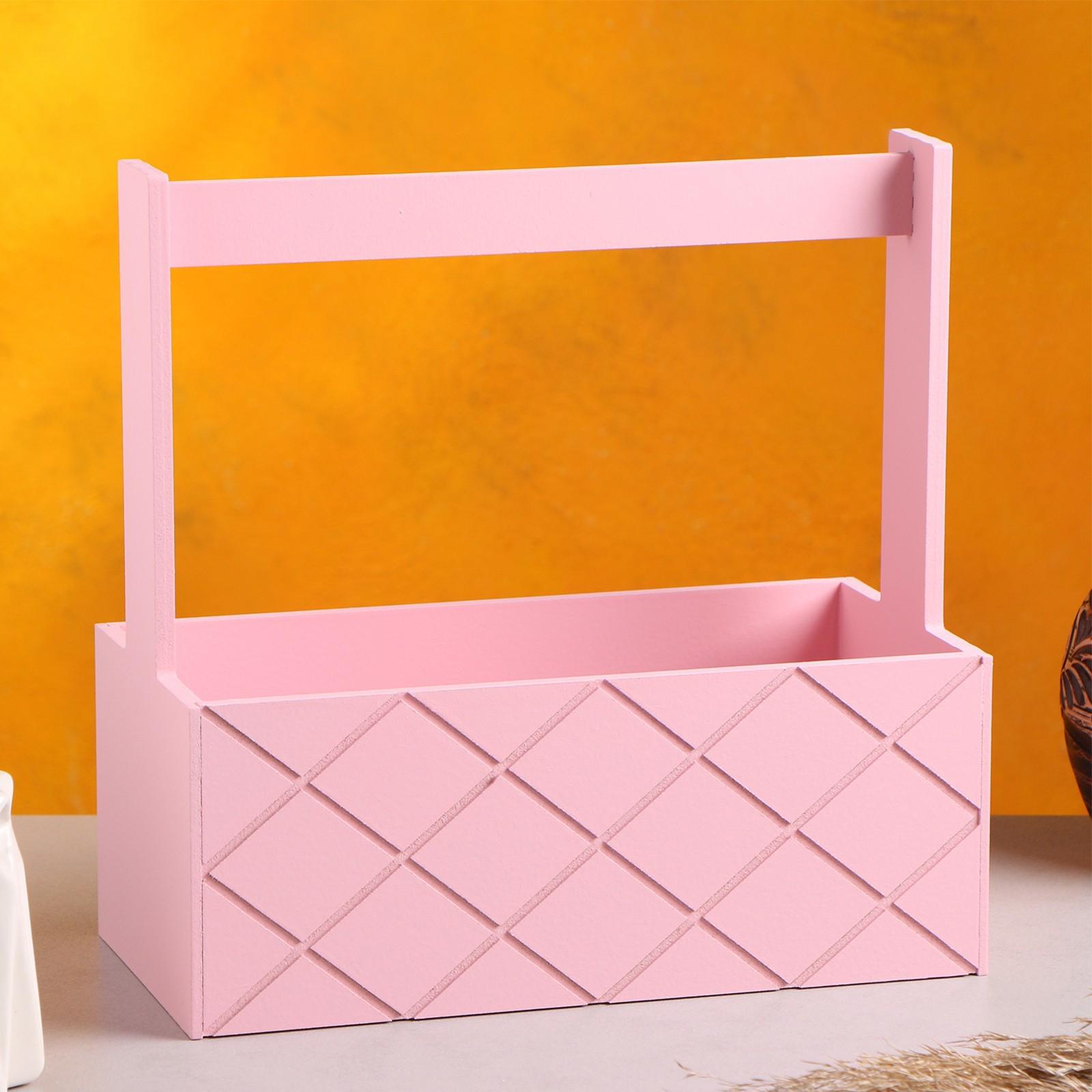 Кашпо деревянное "Эллада большая, сетка", с ручкой, розовый, 25×12,5×10(25) см