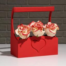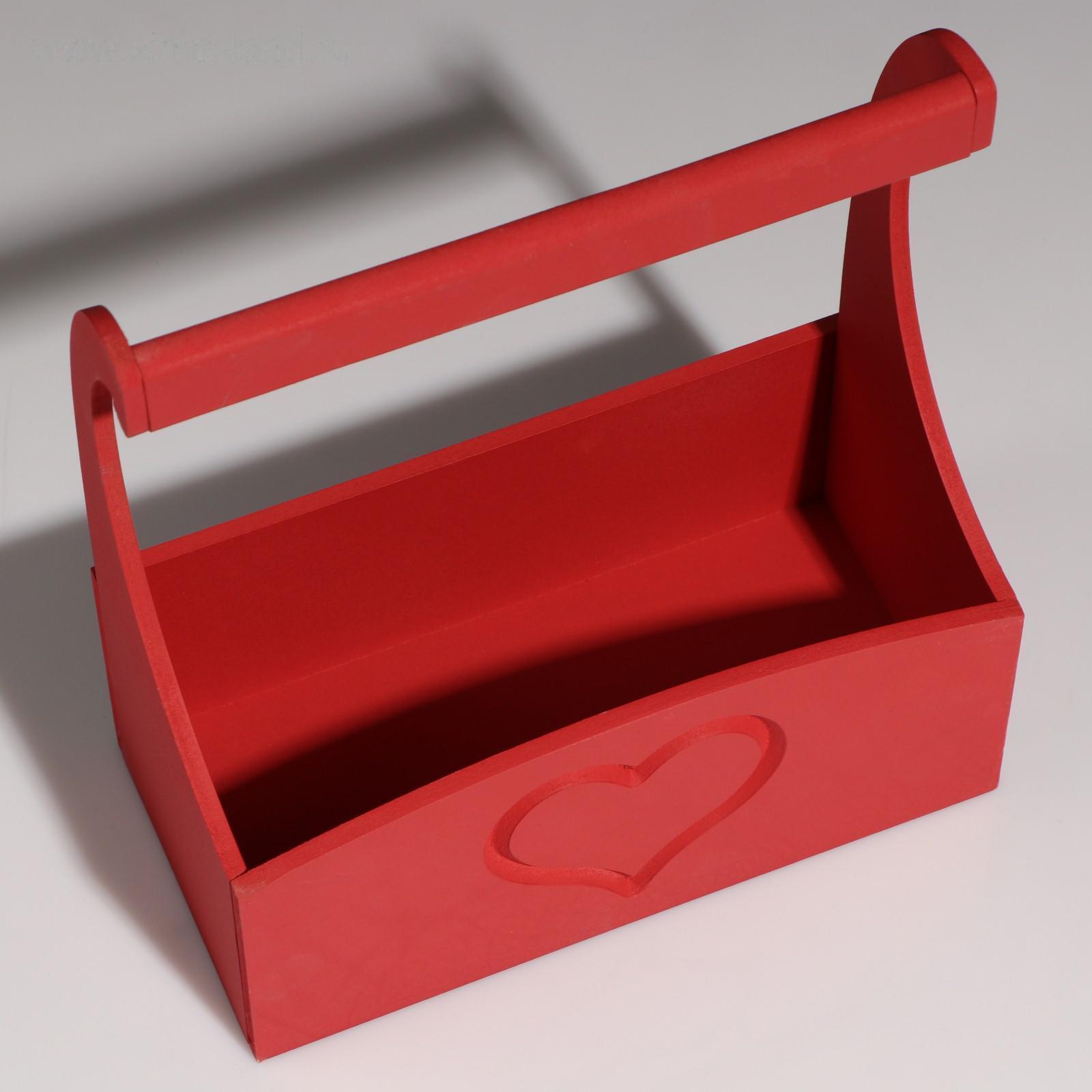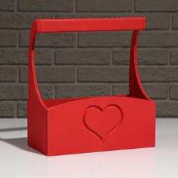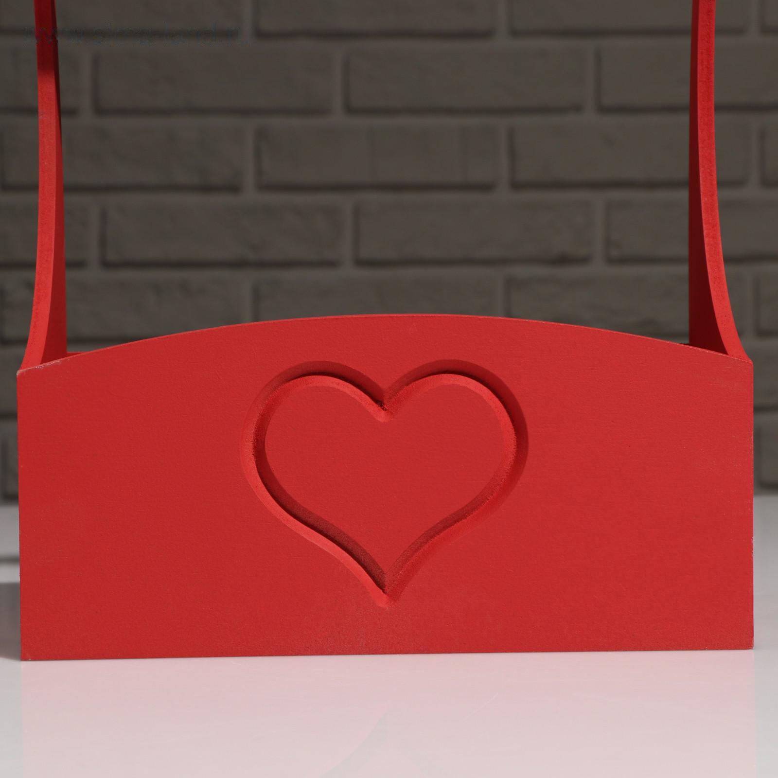 Кашпо деревянное "Symmetric Heart", с ручкой, красный, 25×12,5×10(28) см
