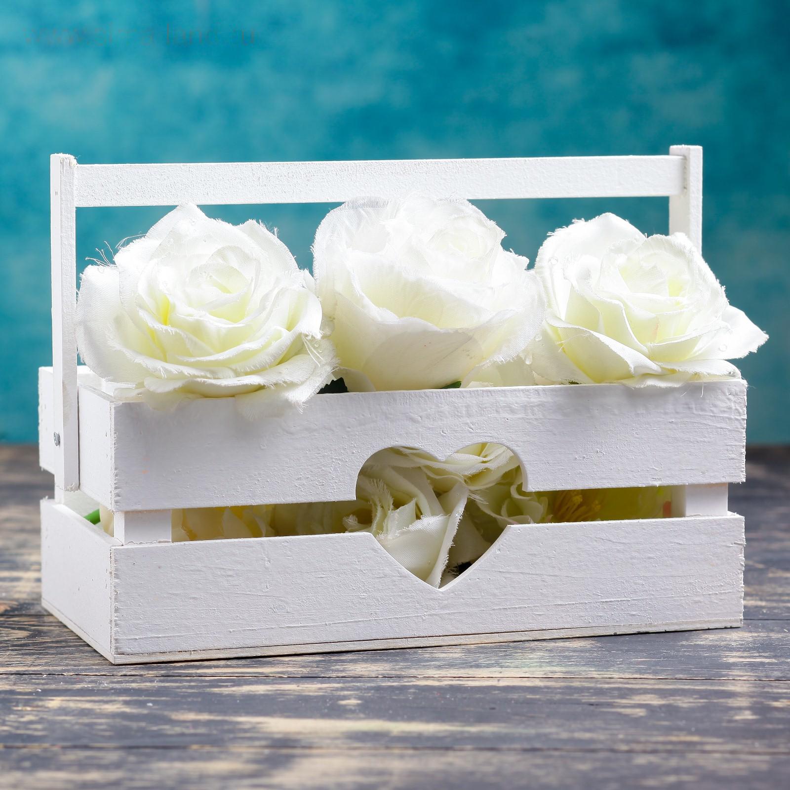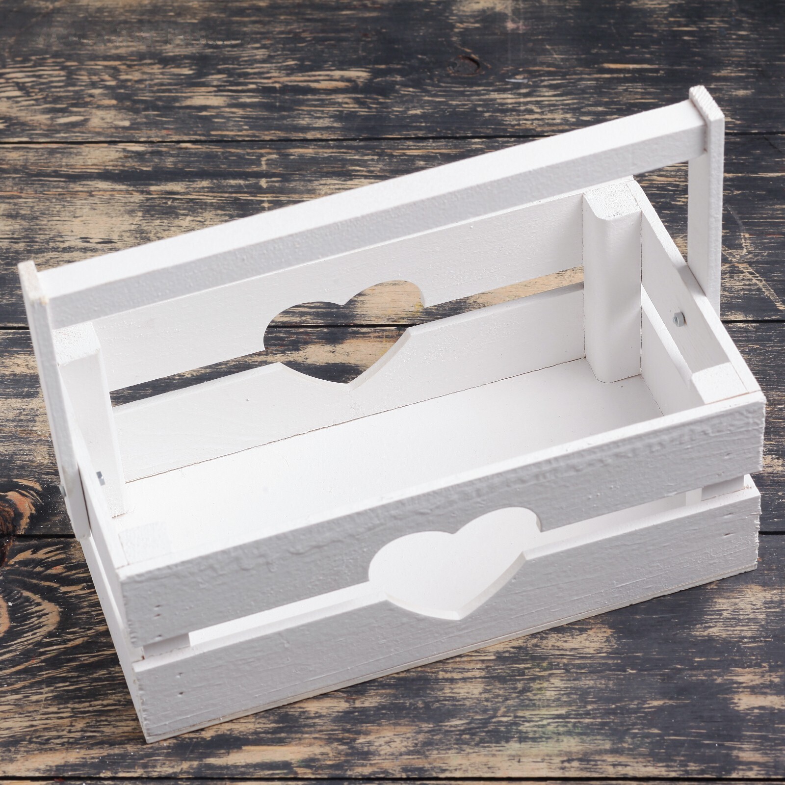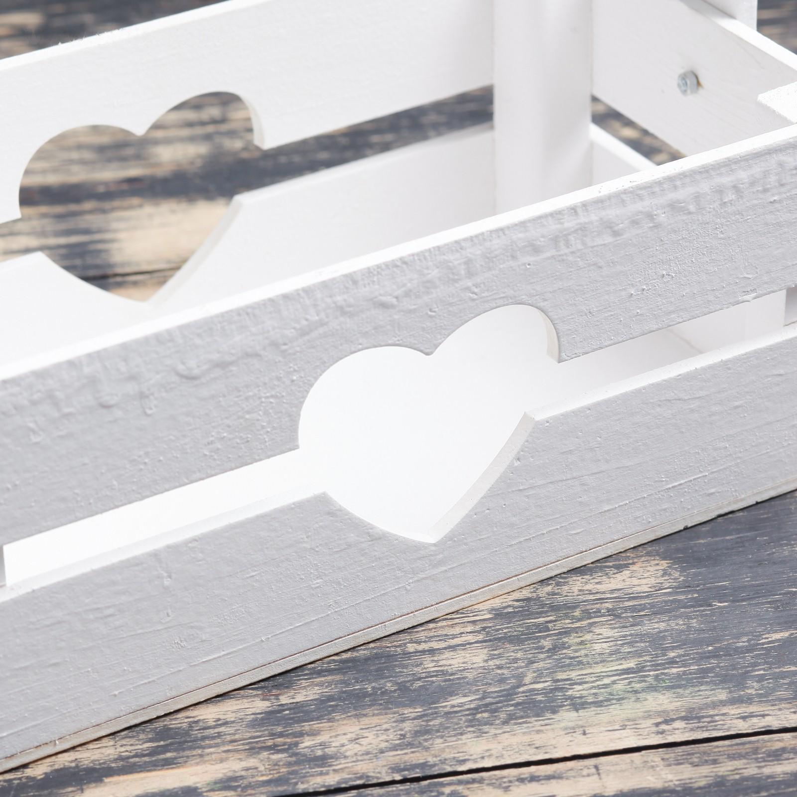 Кашпо деревянное 24.5×13.5×9 см "Двушка Лайт" реечное, сердце, белый Дарим Красиво