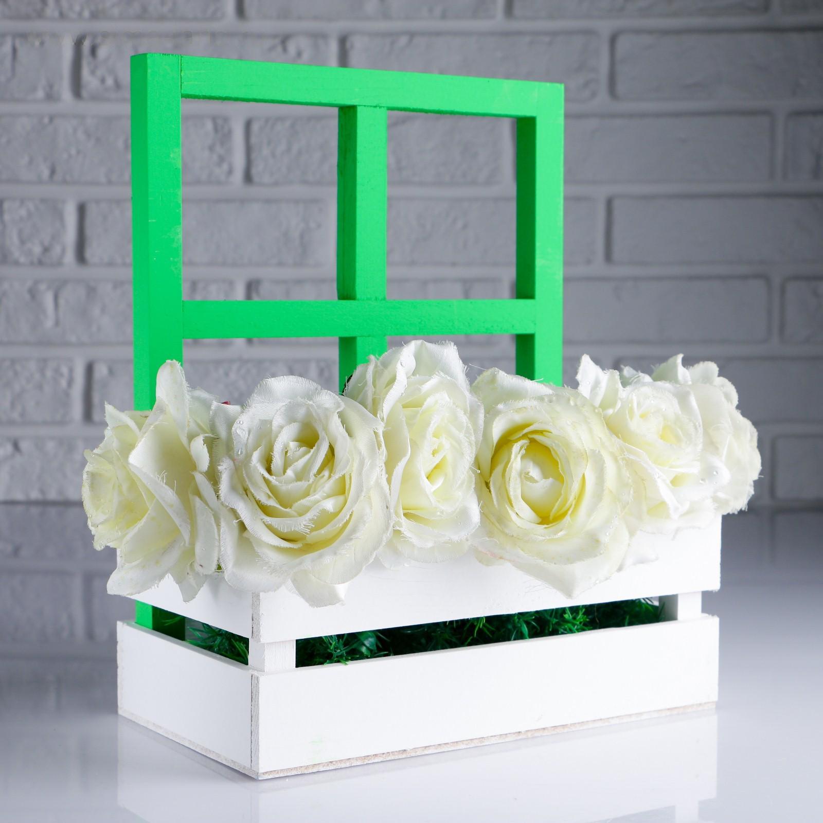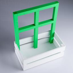 Кашпо деревянное 24×14×30 см "Оконная клумба", с ручкой, белый зелёный Дарим Красиво