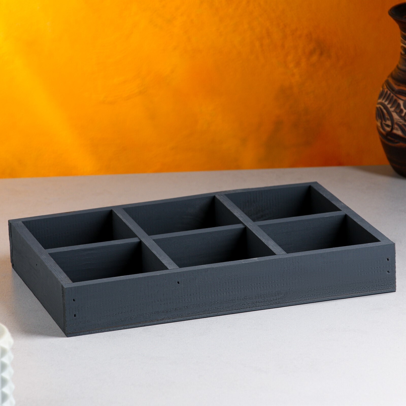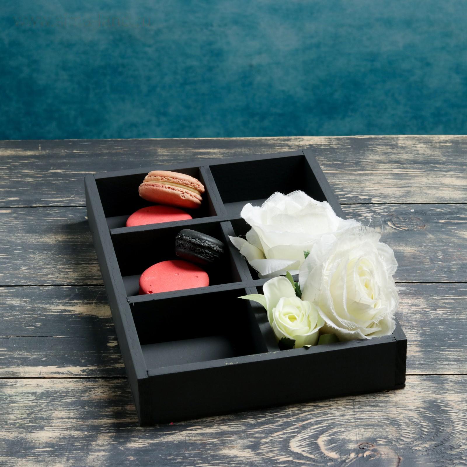 Кашпо деревянное 28х18,5х4,3см "Six, 6 ячеек", чёрный Дарим Красиво