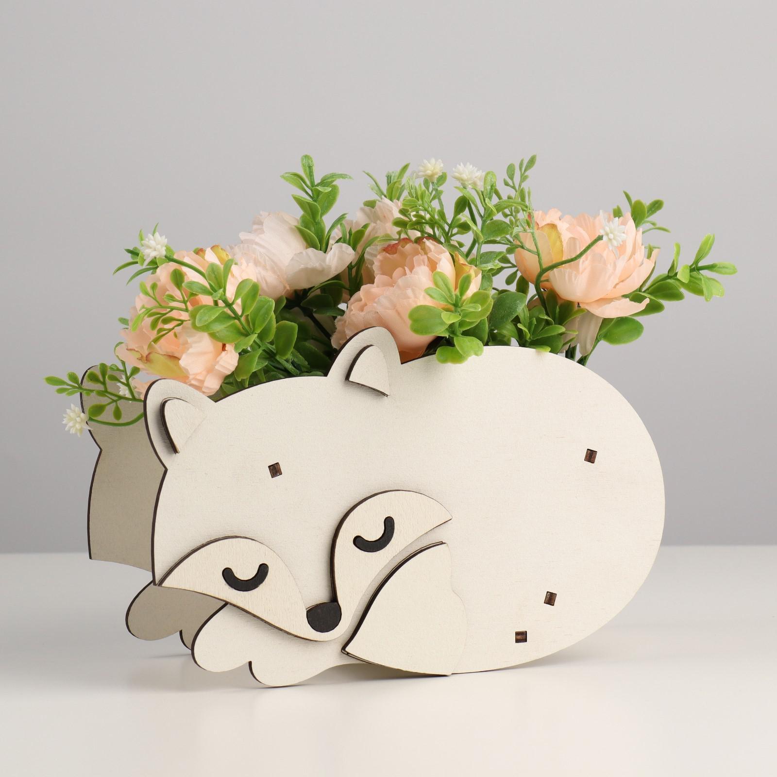 Кашпо деревянное для цветов "Лисичка", белый, 21,1х9,4х13,5 см