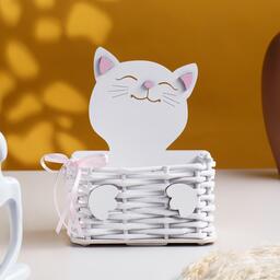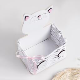 Корзинка плетёная из лозы "Котик" 12,5х9х16,5 см МДФ, Белый-розовый