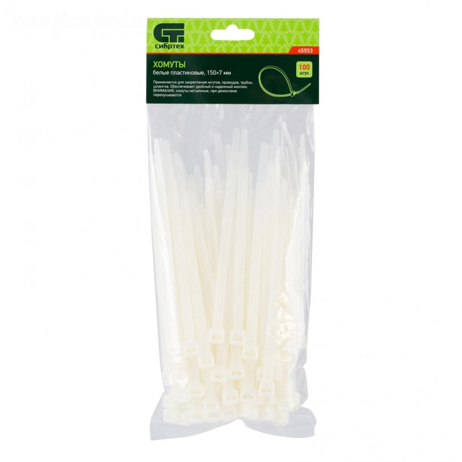 Хомуты "Сибртех", 150 х 7 мм, пластиковые, цвет белый, 100 шт.