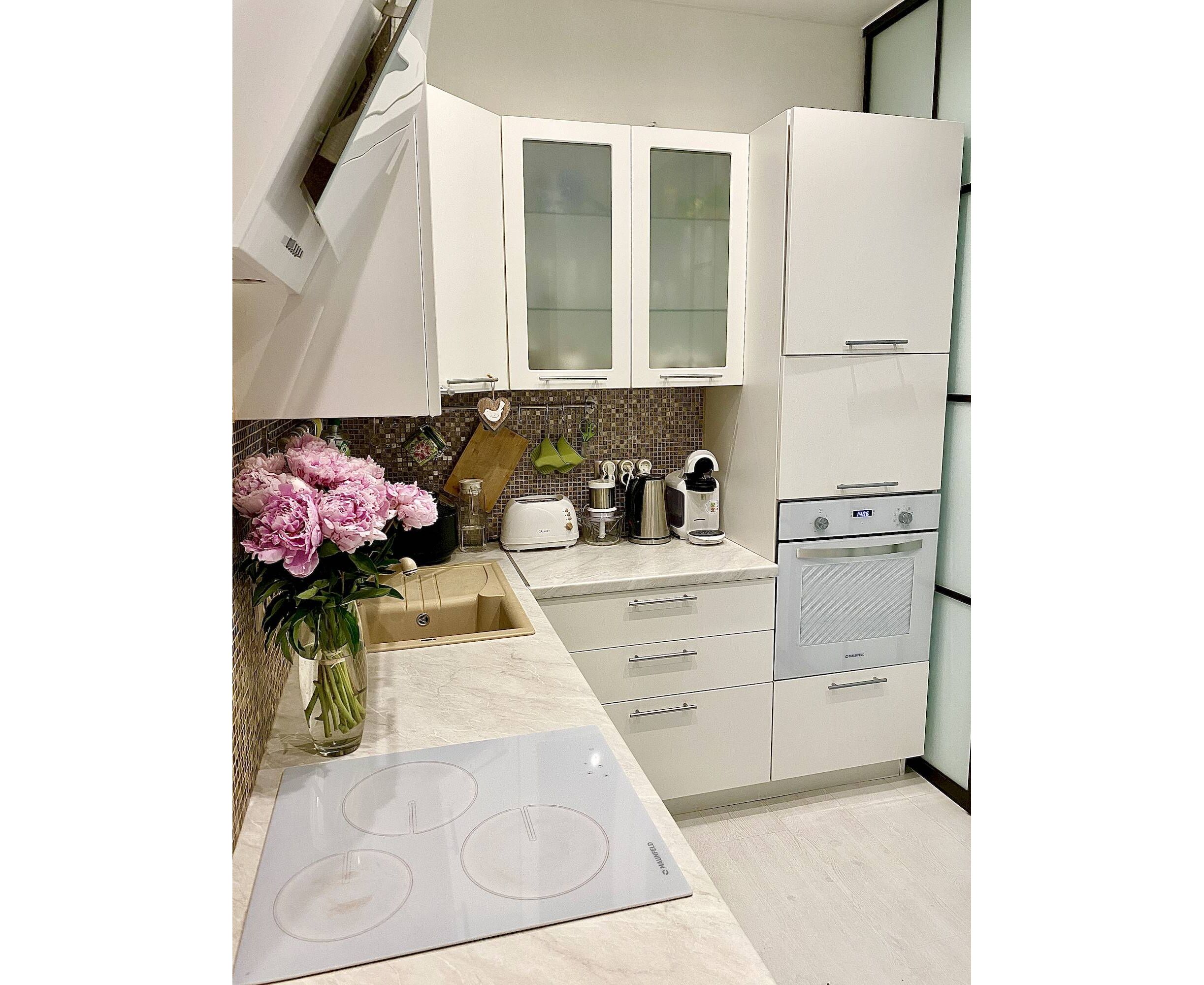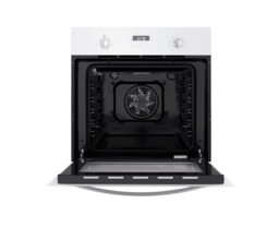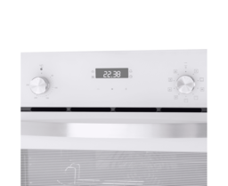 Фронтальная панель духовки выполнена из высококачественного жаропрочного тонированного стекла белого цвета. Ручка дверцы, сделанная из матированной нержавеющей стали, не нагревается в процессе готовки.