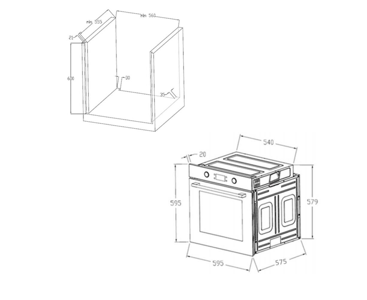 Тангенциальное охлаждение, реализованное в данной модели, минимизирует передачу тепла от духовки предметам, находящимся рядом, например мебели. Дверца состоит из 2-х стекол, что создает холодный фронт и делает процесс приготовления безопасным, исключая возможность ожога при касании.