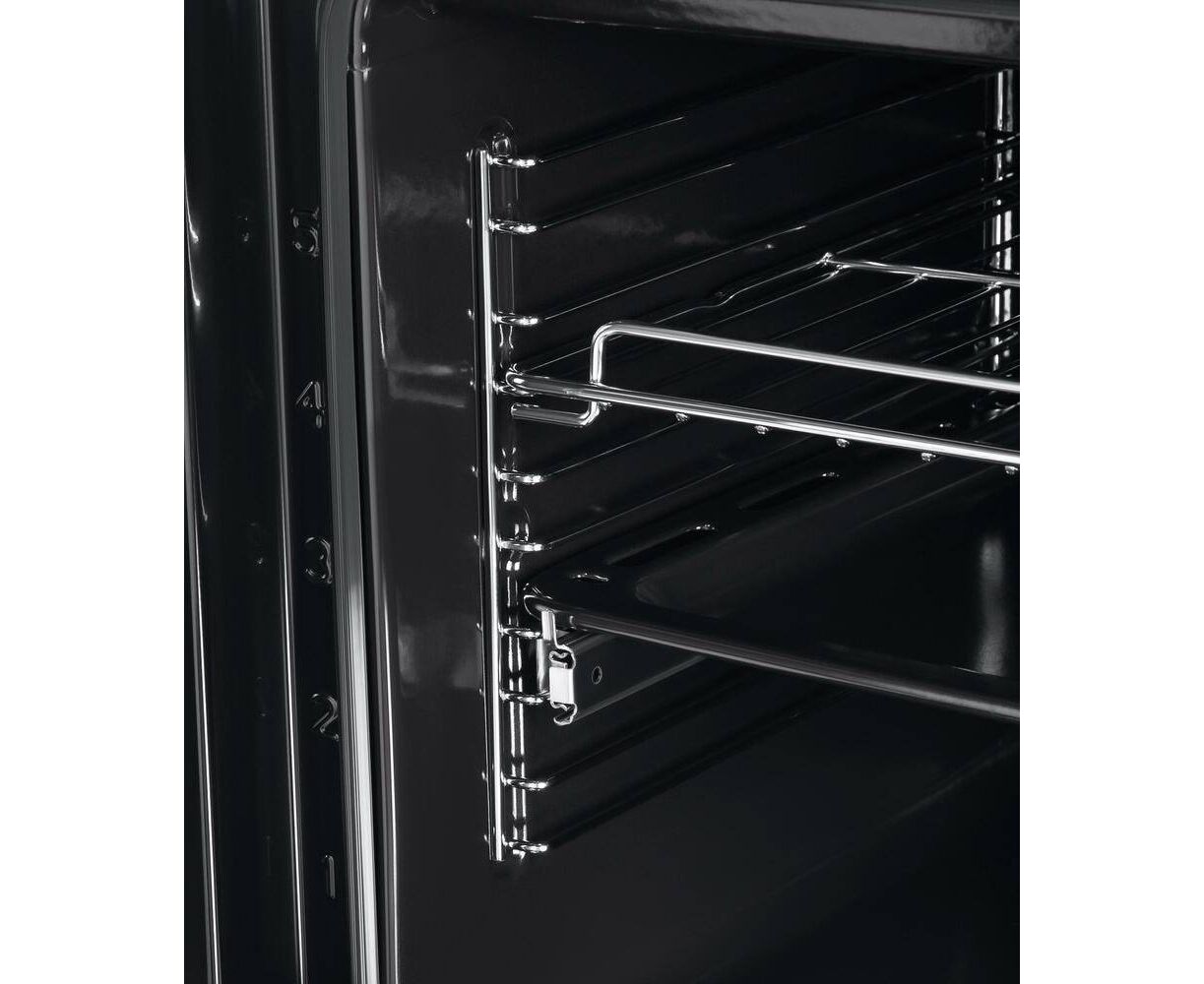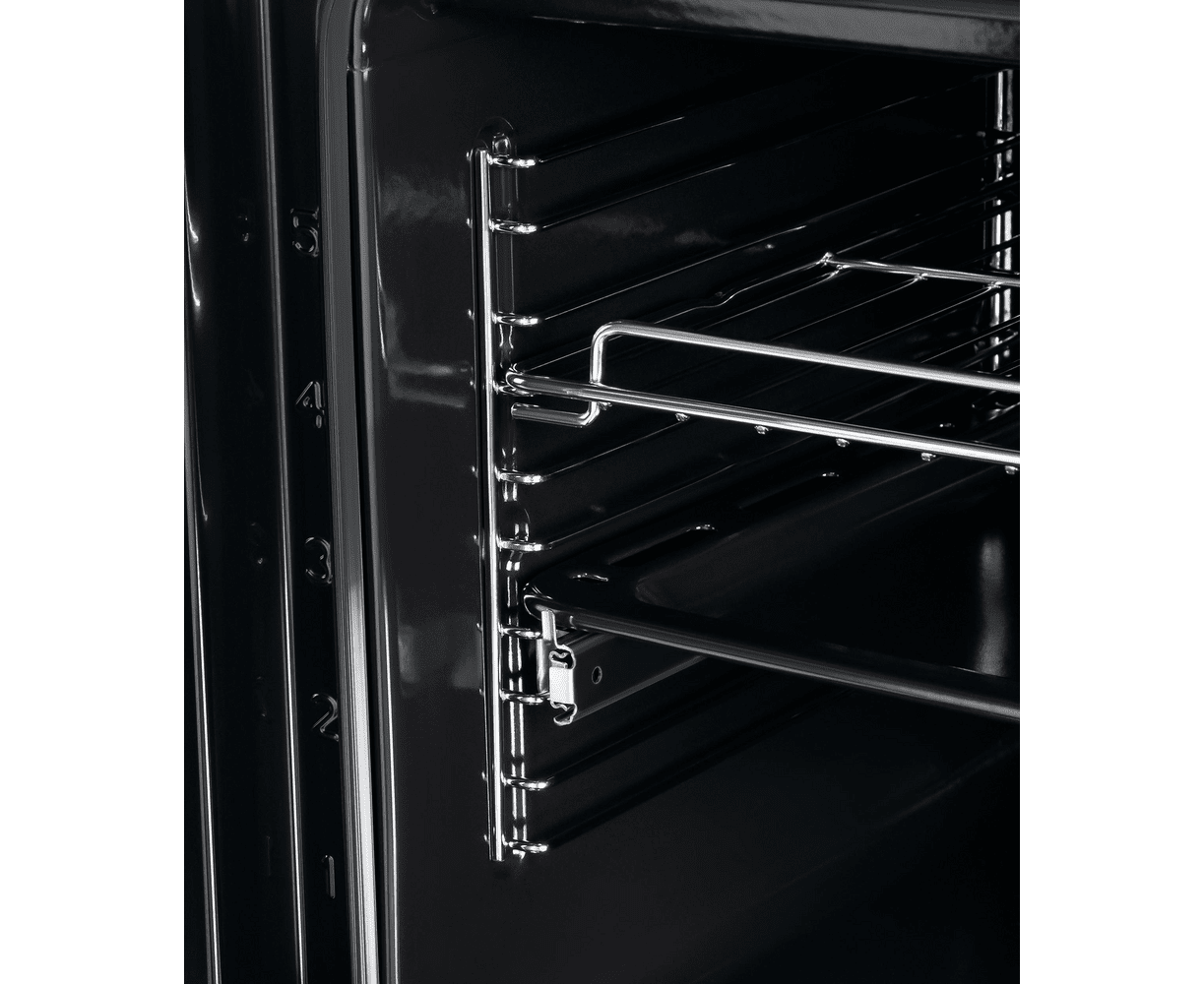 Объем 74 л при стандартной ширине 60 см позволяет готовить одновременно несколько блюд, разместив решетку или противень на одном из 6-ти уровней боковых направляющих. Одни из уровней оснащен удобными телескопическими направляющими. Внутреннее покрытие камеры выполнено из специальной легкоочищающейся эмали черного цвета.